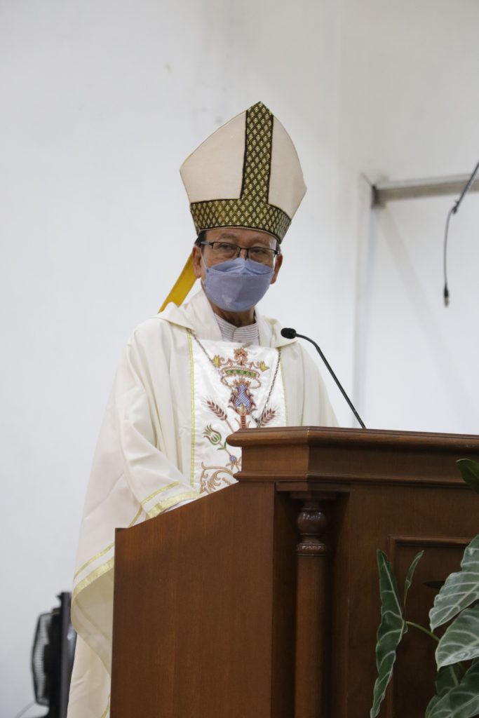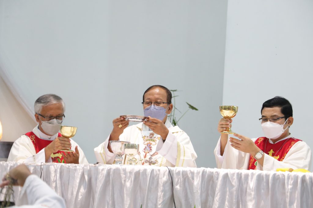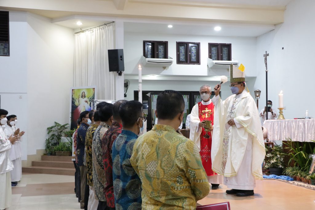 “Profisiat kepada keluarga besar seminari atas usia 75 tahun ini. Begitu banyak rahmat yang diberikan kepada kita, terutama dalam seminari ini, yang diwujudkan dalam Gereja, terutama di keuskupan kita, juga di Tanjung Karang, Pangkal Pinang, dan Padang. Kita bersyukur atas campur tangan Tuhan yang besar,” kata Mgr. Sudarso SCJ, membuka homilinya.