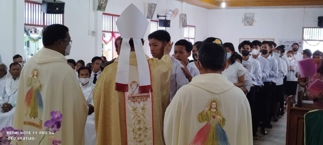 “Hari ini kita bersyukur bersama dengan saudara-saudari yang akan menerima Sakramen Krisma sebagai kepenuhan inisiasi kristiani. Dengan menerima kepenuhan inisiasi ini, saudara-saudari harus semakin mampu menjadi saksi Kristus, menjadi tanda sukacita dan berkat bagi sesama.”