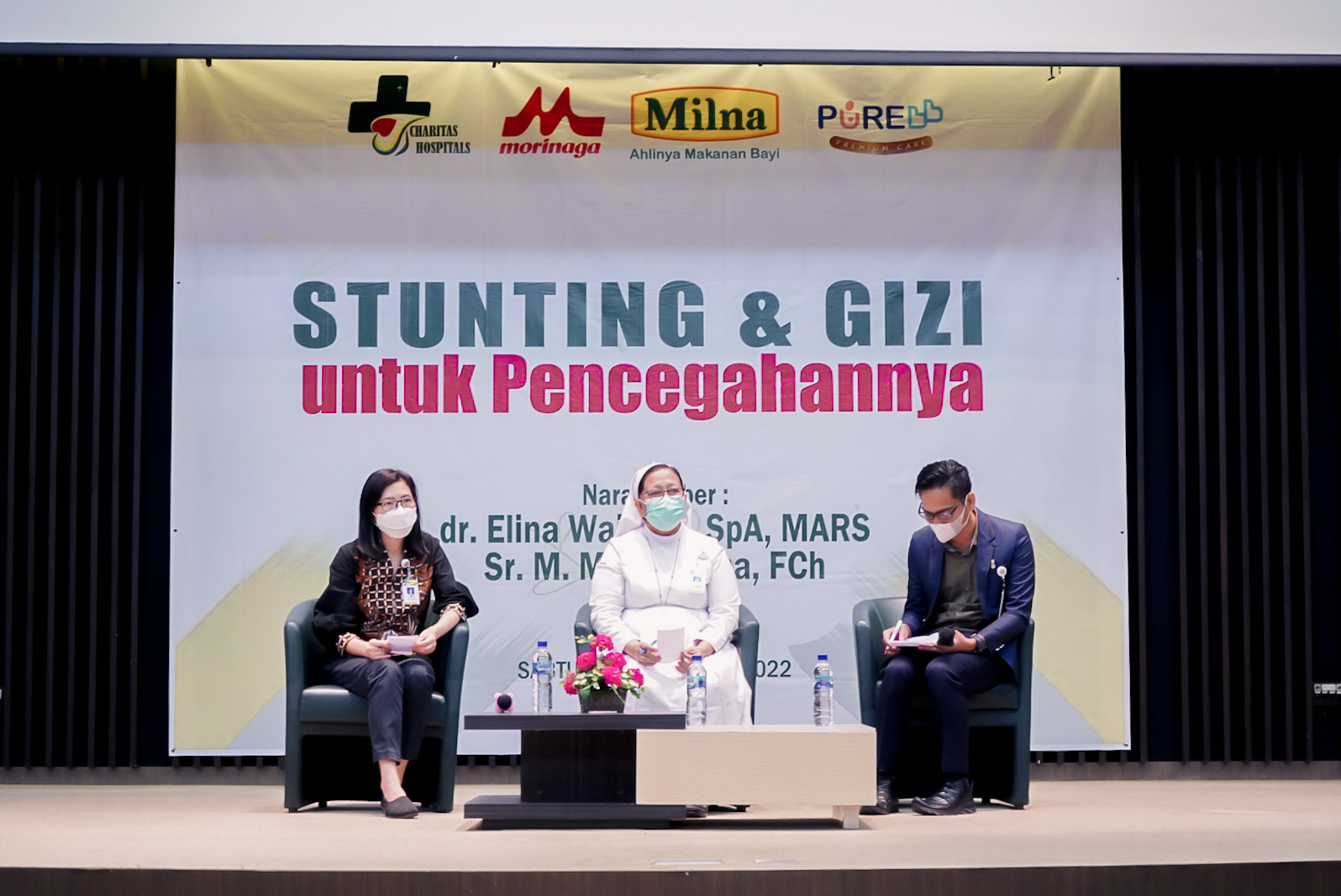 “Mengapa stunting (menjadi masalah yang) sangat penting? Karena kalau kita melihat data di Indonesia tahun 2018, prevalensi stunting tinggi, 30,8%. Semoga tahun sekarang menurun. Pada tahun tersebut, di Asia Tenggara, negara kita peringkat 2. Maka dari itu pemerintah sangat konsen, sehingga memasukkan stunting ini ke dalam sasaran pembangunan nasional,” jelas dr. Sutomo, MARS, Direktur Charitas Hospital Palembang.