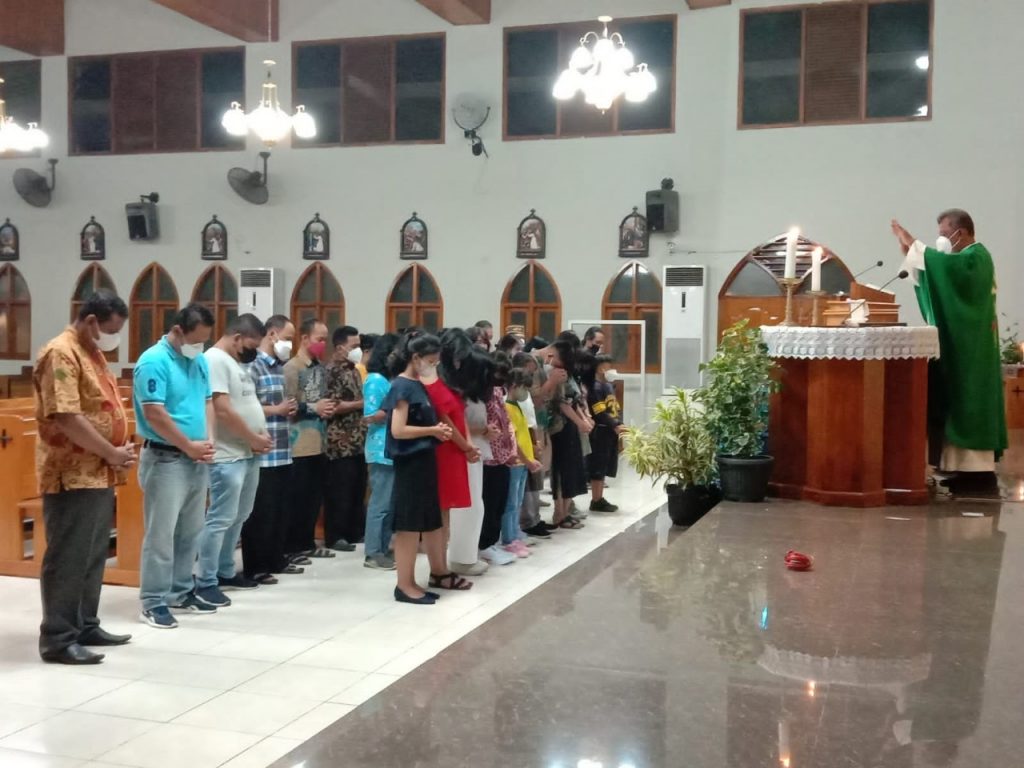 Kontingen Pesparani Provinsi Bengkulu mengikuti misa perutusan yang dilaksanakan, Senin (24/10), yang dilaskanakan di Paroki Santo Yohanes Penginjil Bengkulu.