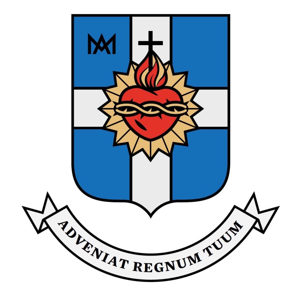 Di sudut kiri atas adalah monogram Latin Perawan Maria (AM: Auspice Maria/Ave Maria), dia yang dengan Ecce Ancilla-nya “menghasut kita untuk siap dalam iman: dia adalah citra sempurna dari kehidupan religius kita” (Konstitusi SCJ Nomor 85)