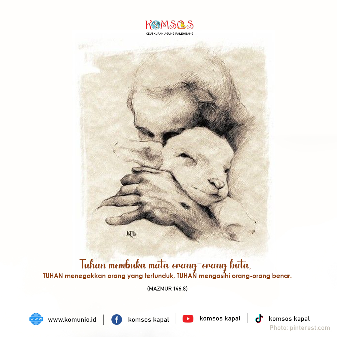 *Tuhan membuka mata orang buta, Tuhan menegakkan orang yang tertunduk, Tuhan mengasihi orang-orang benar. Tuhan menjaga orang-orang asing.