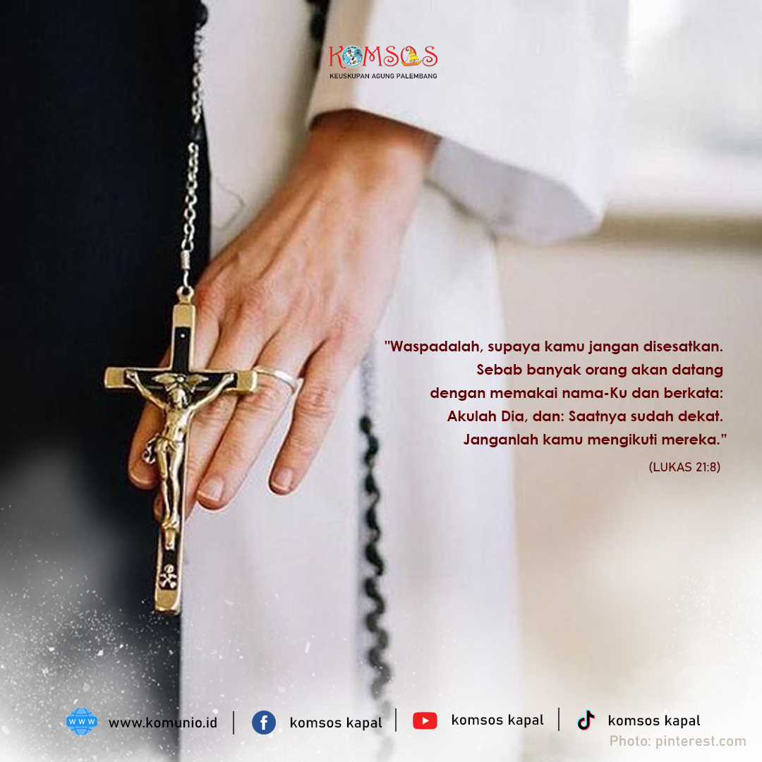 Jawab Yesus, “Waspadalah, jangan sampai kalian disesatkan. Sebab banyak orang akan datang dengan memakai nama-Ku, dan berkata, ‘Akulah Dia’ dan ‘Saatnya sudah dekat.’ Janganlah kalian mengikuti mereka. Dan bila kalian mendengar kabar tentang perang dan pemberontakan, janganlah kalian terkejut. Sebab semuanya itu harus terjadi dahulu, tetapi itu tidak berarti kesudahannya akan datang segera.”