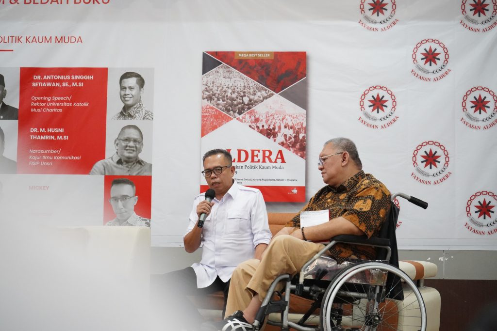 Sementara Dr. M. Husni Thamrin, M.Si, Kajur Ilmu Komunikasi FISIP UNSRI hadir sebagai pembicara bersama Kemas Khoirul Muklis direktur lintas politika Indonesia. Ia mengatakan bahwa hal menarik dari buku ALDERA adalah perjuangan dari Pius Lustrilanang.