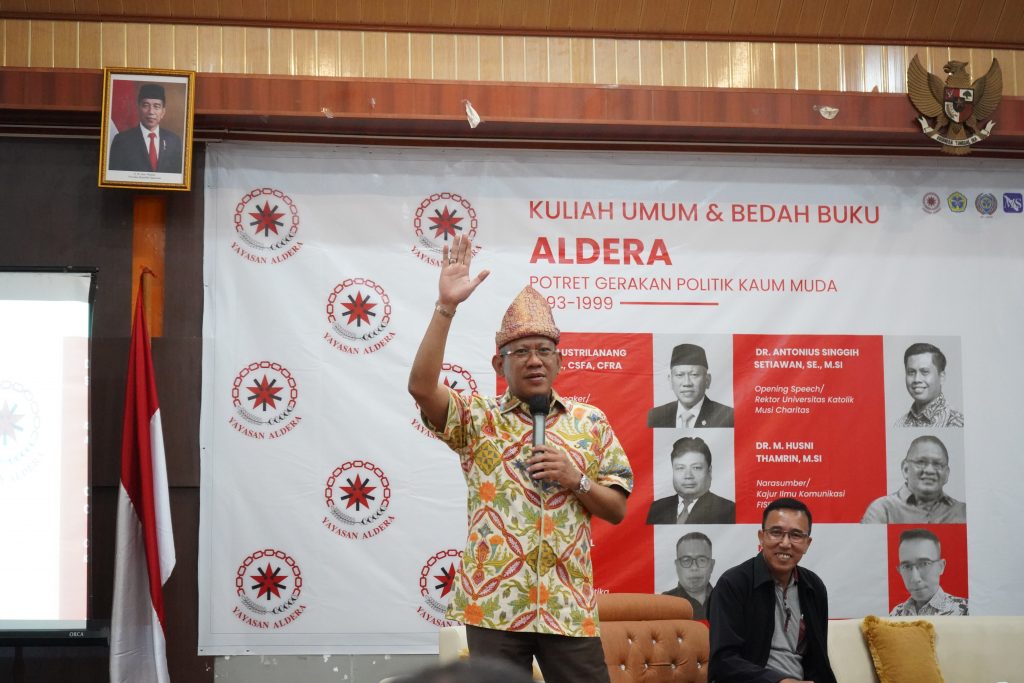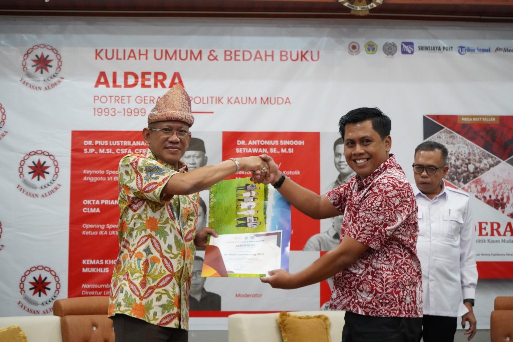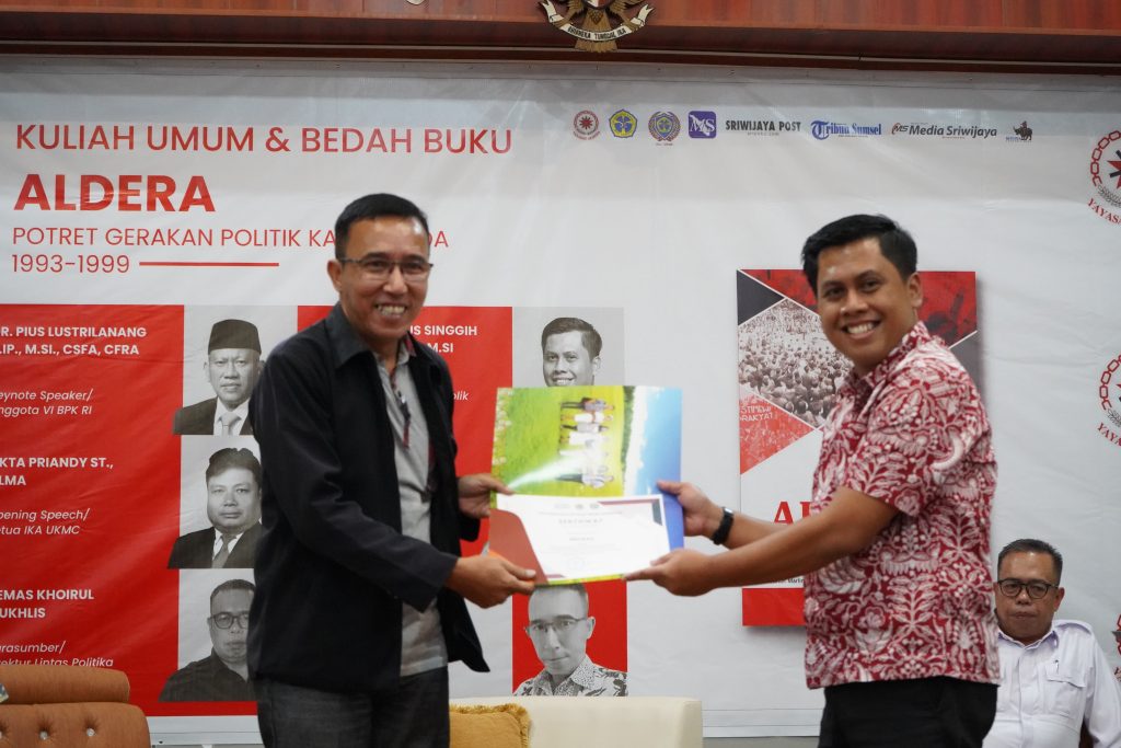 Kuliah Umum dan Bedah Buku berjudul Potret Gerakan Politik Kaum Muda 1993 – 1999 berlangsung pada Jumat, 02/12 lalu di Gedung Yoseph Universitas Katolik Musi Charitas (UKMC) Palembang, Sumatra Selatan. Acara yang dihadiri oleh kurang lebih 300 peserta ini menghadirkan Dr. Pius Lustrilanang S.IP., M. SI., CSF, CFRA yang merupakan anggota VI BPK RI sebagai keynote speaker. Ia menjadi tokoh utama yang diceritakan dalam buku ALDERA (Aliansi Demokrasi Rakyat).