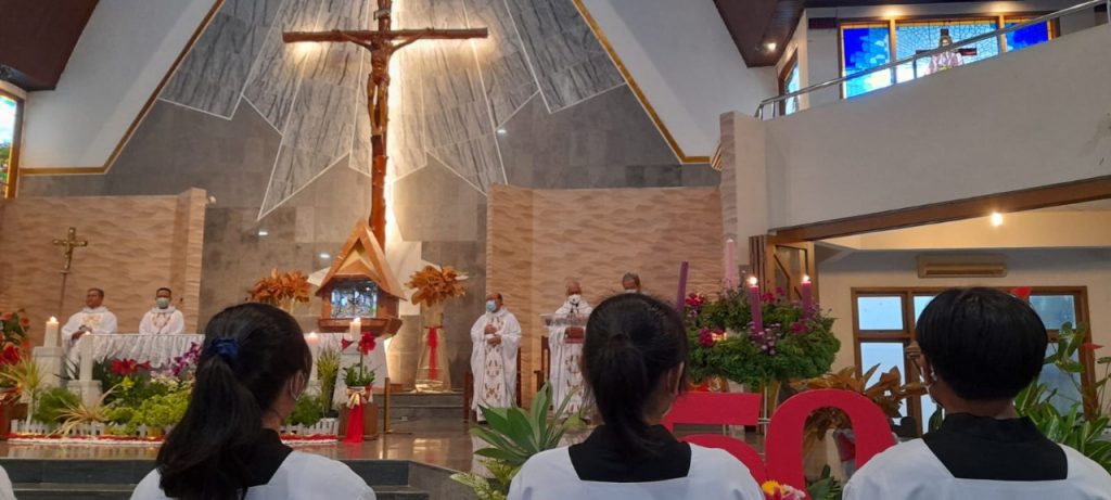 Tiga puluh imam ikut memeriahkan Perayaan Ekaristi 50 Tahun Imamat Rm. Ambrosius Dhani Indrata SCJ, 6 Desember lalu di Paroki Ratu Damai Teluk Betung, Bandar Lampung. Rm. Andreas Suparman SCJ, Provinsial SCJ Indonesia memimpin perayaan syukur ini didampingi oleh Rm. Yohanes Samiran SCJ dan Rm. Dhani, sang pestawan.