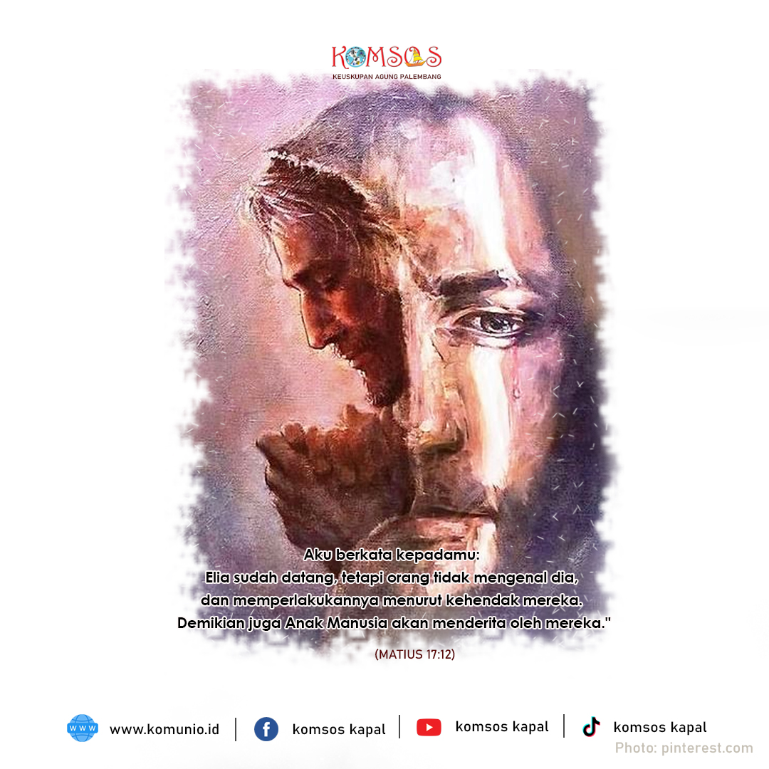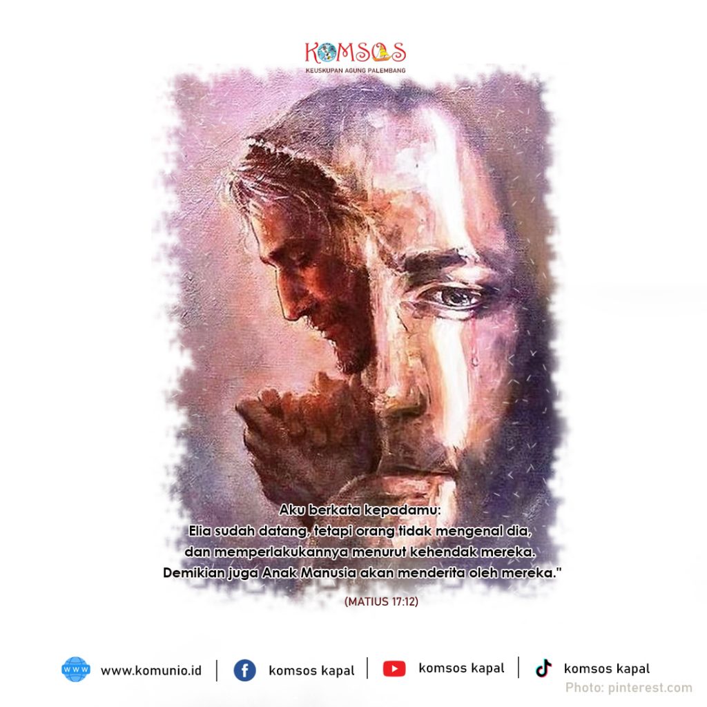 Yesus menjawab, “Memang Elia akan datang dan memulihkan segala sesuatu. Dan Aku berkata kepadamu, Elia sudah datang, tetapi orang tidak mengenal dia, dan memperlakukannya menurut kehendak mereka. Demikian pula Anak Manusia akan menderita oleh mereka.”