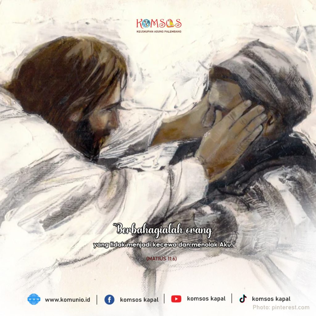 Yesus menjawab mereka, “Pergilah dan katakanlah kepada Yohanes apa yang kamu dengar dan kamu lihat: Orang buta melihat, orang lumpuh berjalan, orang kusta menjadi tahir, orang tuli mendengar, orang mati dibangkitkan dan kepada orang miskin diberitakan kabar baik. Berbahagialah orang yang tidak sangsi dan tidak menolak Aku.”