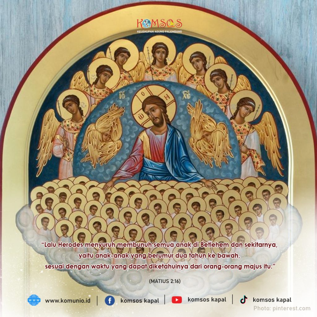 Rabu Masa Natal – Pesta Kanak-kanak Suci; Bacaan I: 1Yoh 1:5-2:2;Mazmur Tanggapan: Mzm 124:2-3.4-5.7b-8;Bacaan Injil: Mat 2:13-18; Warna Liturgi: Merah