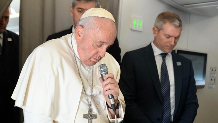 Saat dia mengucapkan terima kasih kepada lebih dari 70 jurnalis dalam penerbangan itu, yang berasal dari sekitar 12 negara, Paus berkata, “Kita berdoa untuk orang-orang itu.”