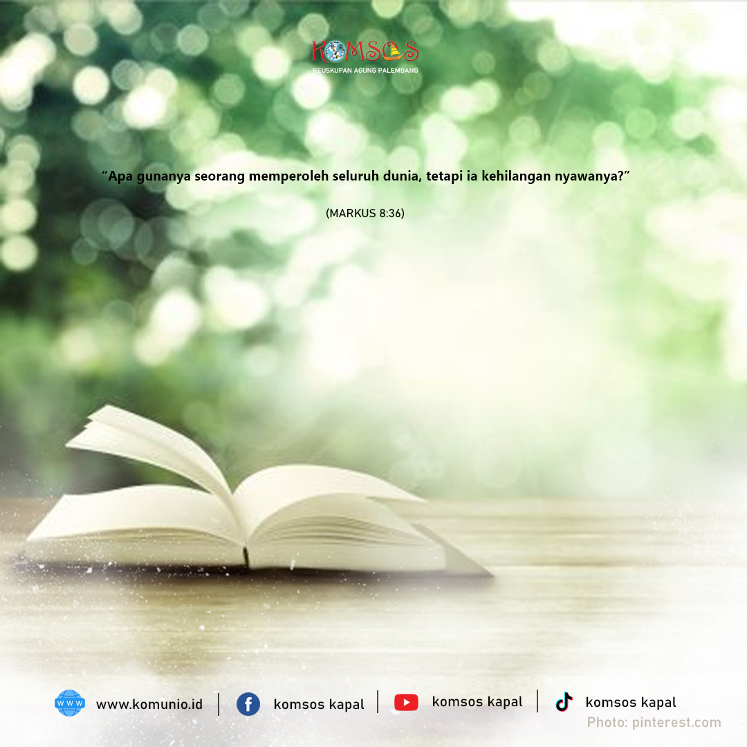 Pada suatu Ketika Yesus memanggil orang banyak dan murid-murid-Nya, dan berkata kepada mereka, “Setiap orang yang mau mengikuti Aku, harus menyangkal diri, memikul salibnya, dan mengikut Aku. Karena barangsiapa mau menyelamatkan nyawanya, ia akan kehilangan nyawanya; tetapi barangsiapa kehilangan nyawanya karena Aku dan karena Injil, ia akan menyelamatkan nyawanya.