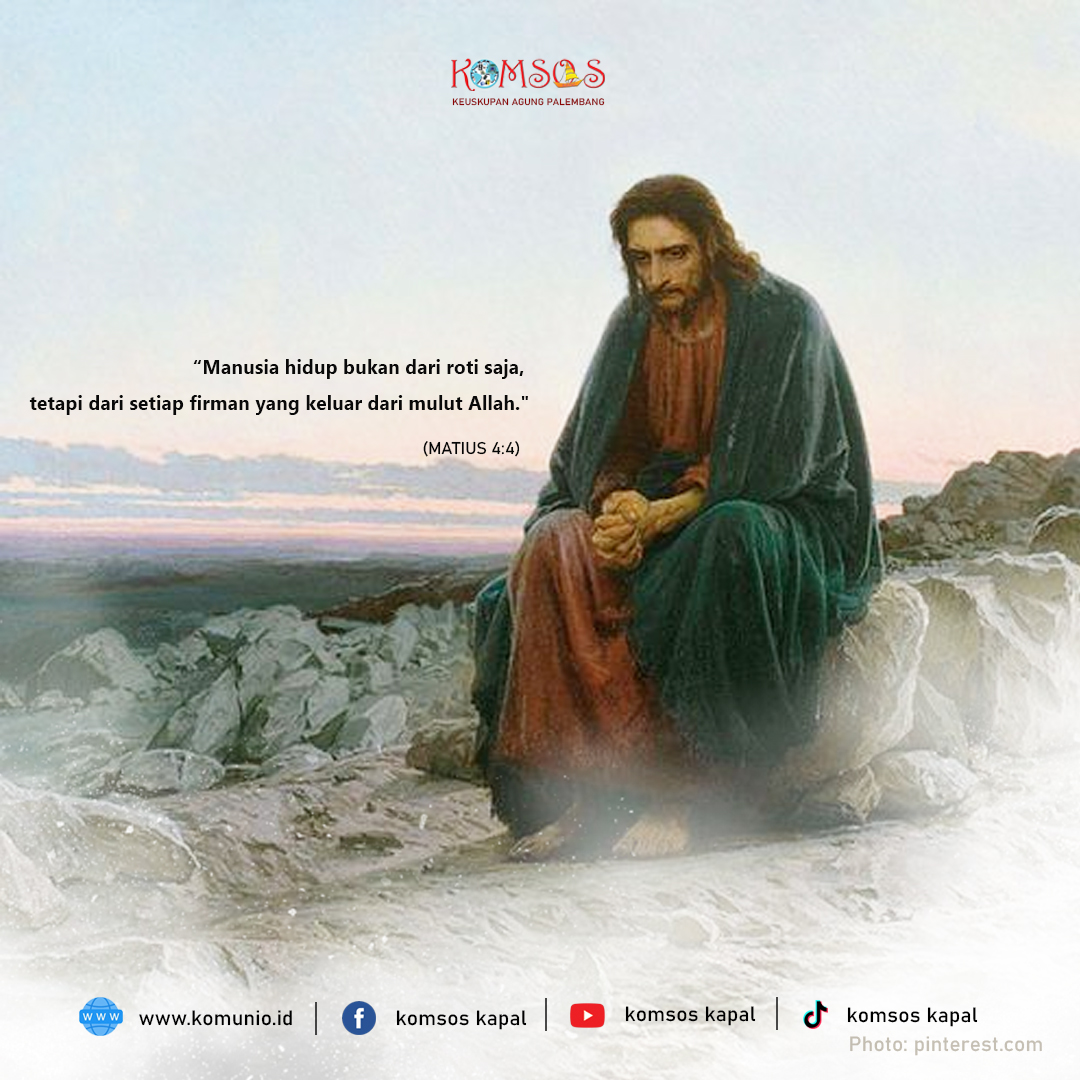 Tetapi Yesus menjawab, “Ada tertulis: Manusia hidup bukan dari roti saja, tetapi dari setiap firman yang keluar dari mulut Allah.”