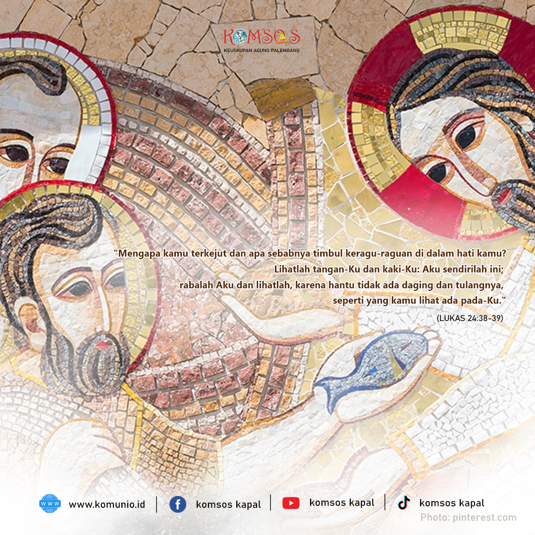 Kamis Oktaf Paskah; (Ditiadakan) PF S. Martinus I, Paus dan Martir; Bacaan I: Kis 3:11-26; Mazmur Tanggapan: Mzm 8:2a.5.6-7.8-9; Bait Pengantar Injil: Mzm 118:24; Bacaan Injil: Luk 24:35-48; Warna Liturgi: Putih