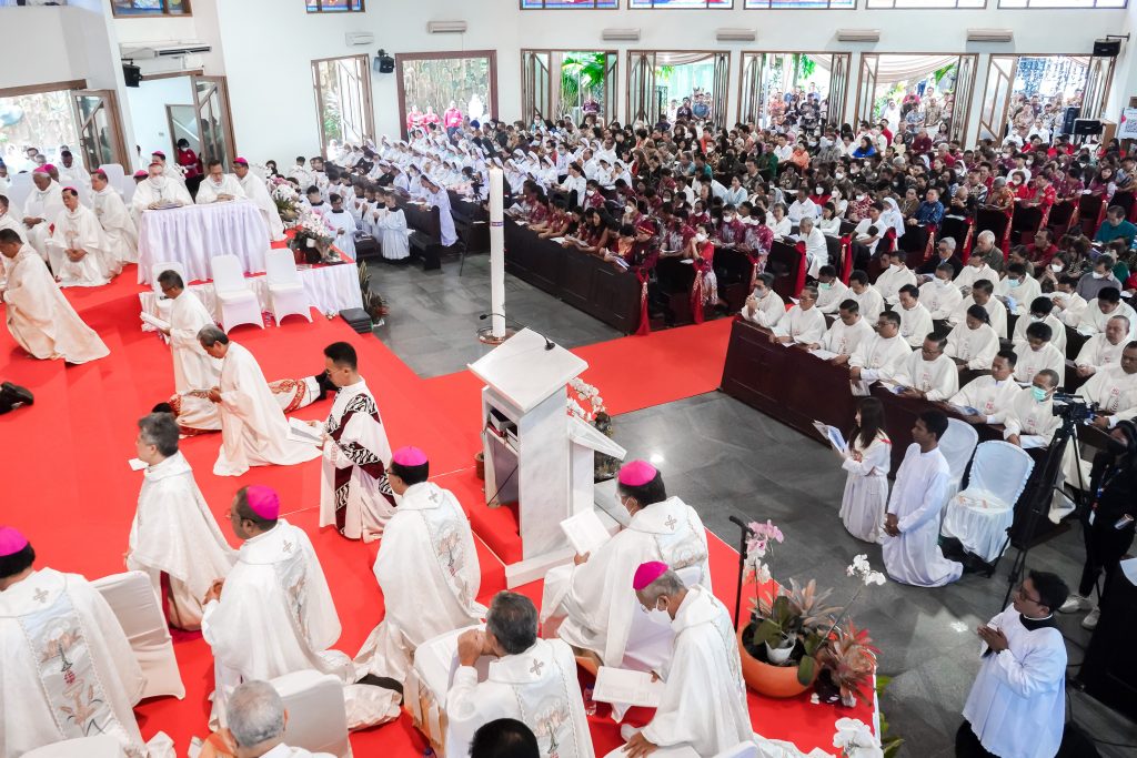 Pagi itu, sejarah terukir di Keuskupan Tanjungkarang. Monseigneur Vinsensius Setiawan Triatmojo menerima tahbisan episkopal (tahbisan uskup), Senin (01/5). Senyum tak henti-hentinya terpancar dari wajah umat, yang tidak hanya dari Keuskupan Tanjungkarang saja, namun juga umat Keuskupan Agung Palembang yang hadir. Wajar saja, sebelum terpilih menjadi uskup 17 Desember 2022 lalu, ia adalah imam diosesan Keuskupan Agung Palembang.