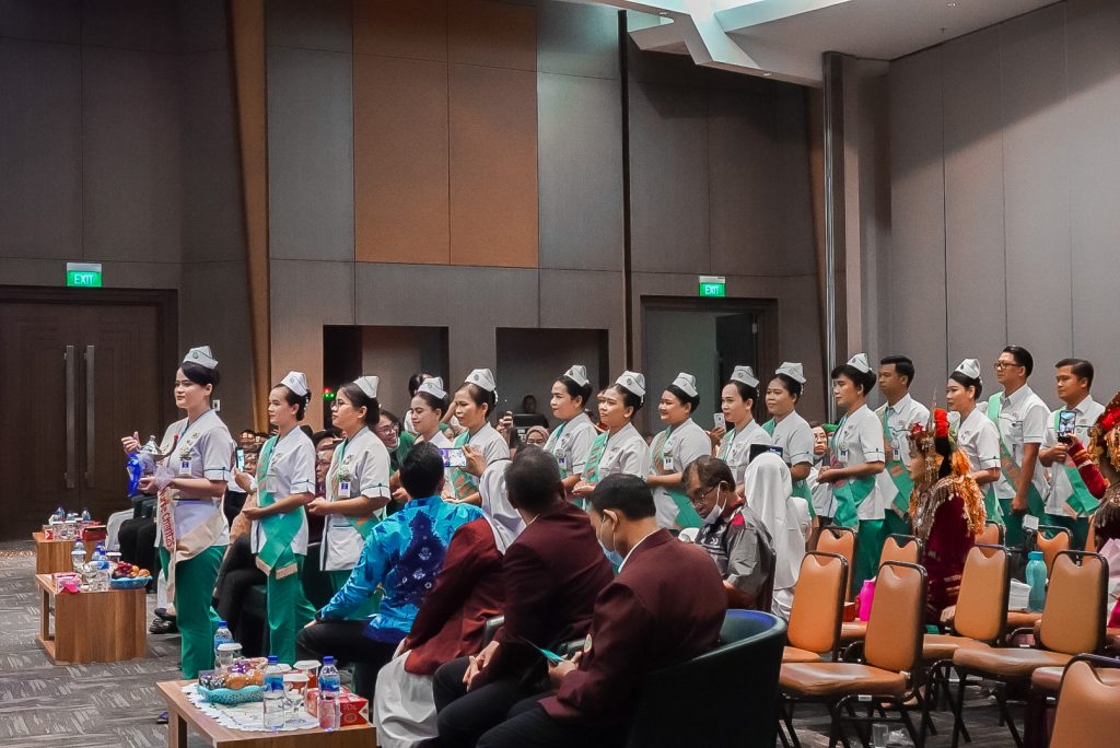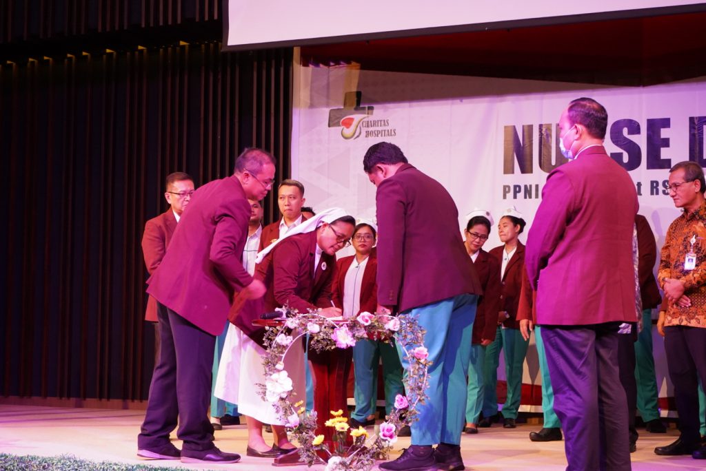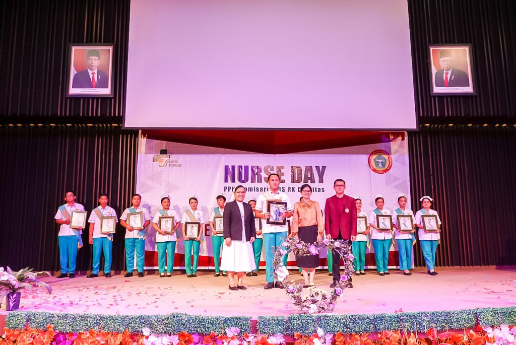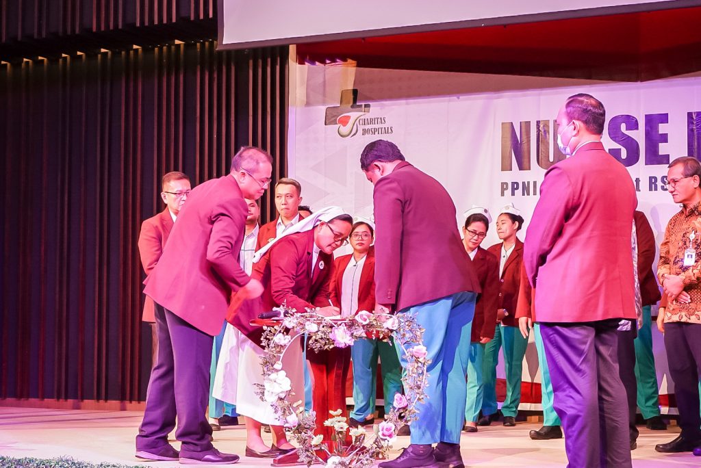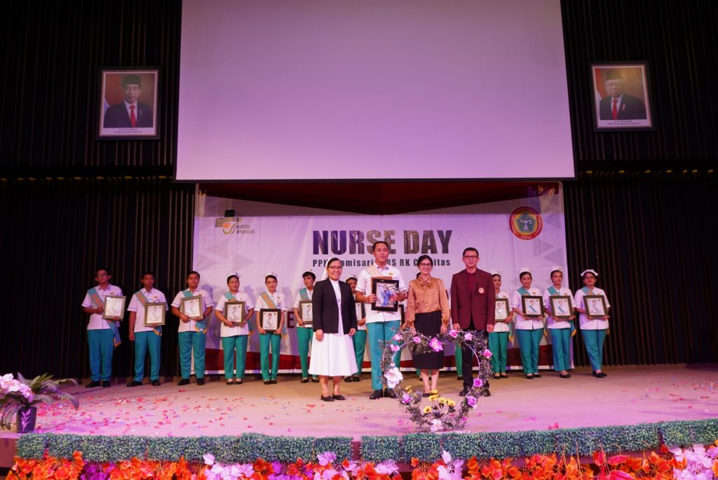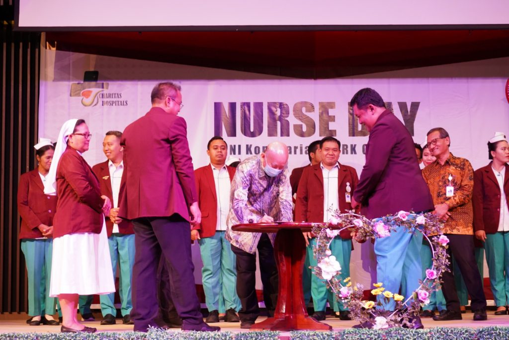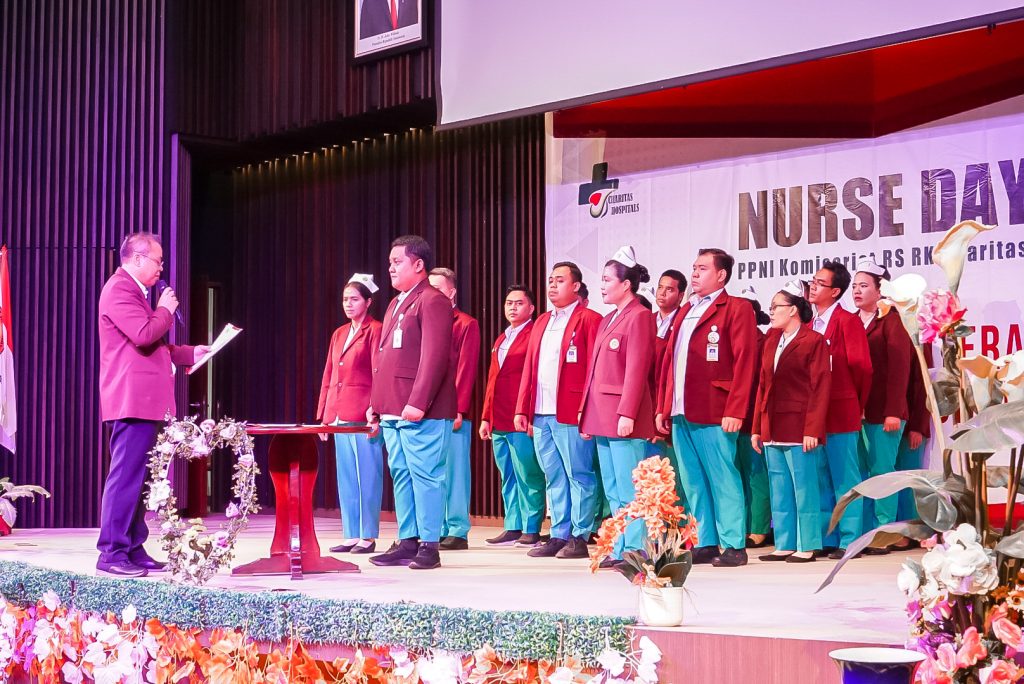 Puluhan orang berpakaian seragam putih hijau bertopi putih memadati Gedung Auditorium Charitas Hospital Palembang. Mereka adalah perawat Charitas Hospital. Pagi itu, Sabtu (13/05) dilangsungkan acara puncak International Nurse Day 2023 Charitas Hospital Palembang. Adapun tema yang diusung adalah our nurses our future.
