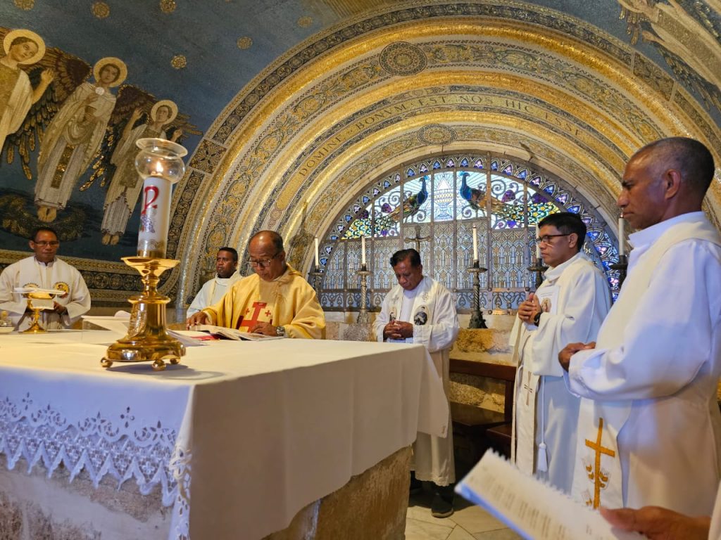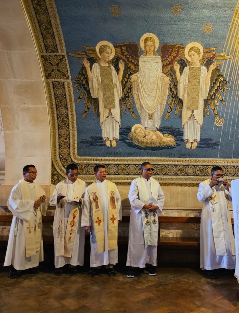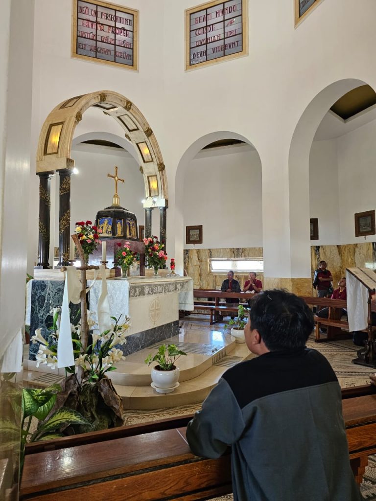 Ekaristi sebagai sumber dan puncak iman menegaskan hal senada perihal memberi. Diambil, dipecah-pecah, lalu dibagikan. Komitmen berani memberi diri itu kami segarkan dengan berziarah ke Gereja Mensa Ekaristi.