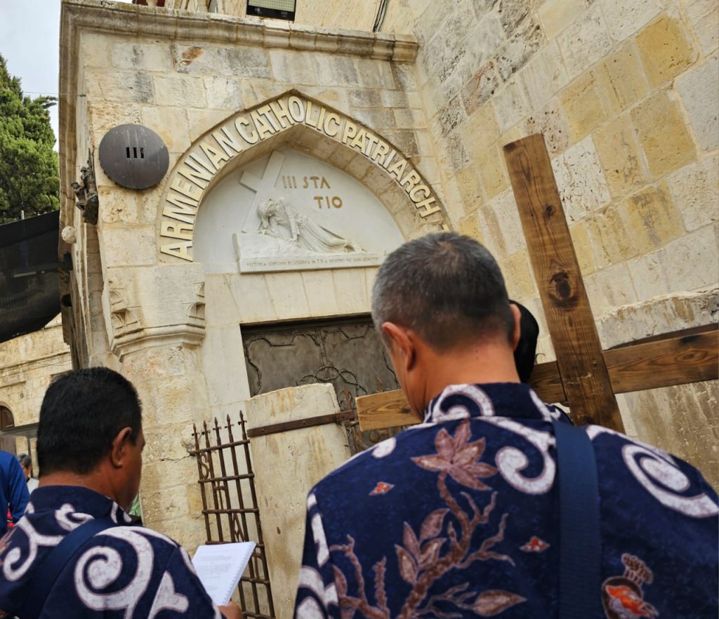 Hari ini, Jumat (02/06), Magdatama Group melanjutkan ziarah untuk mengenang tahapan hidup Yesus. Memasuki gereja yang menandai tempat kelahiran Kristus itu berarti harus merunduk. Satu-satunya pintu masuk di tembok depan yang mirip benteng ini tingginya sekitar 1,2 meter. Pintu masuk sebelumnya ke Gereja Kelahiran di Bethlehem diturunkan sekitar tahun 1500 untuk menghentikan para penjarah membawa gerobak mereka masuk. Bagi orang Kristiani, tampaknya pantas untuk membungkuk sebelum memasuki tempat di mana Tuhan merendahkan diri untuk menjadi manusia.
