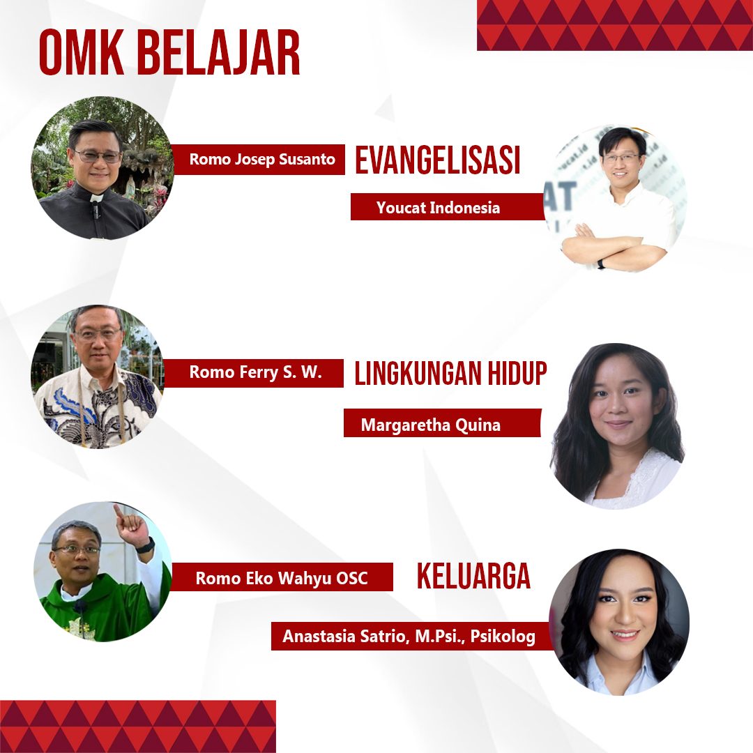 Tentang katekese, ada tiga katekese dengan tema belajar yang akan diikuti para peserta, yaitu OMK Belajar Berevangelisasi, OMK Belajar Tentang Keluarga, dan OMK Belajar Tentang Lingkungan Hidup.