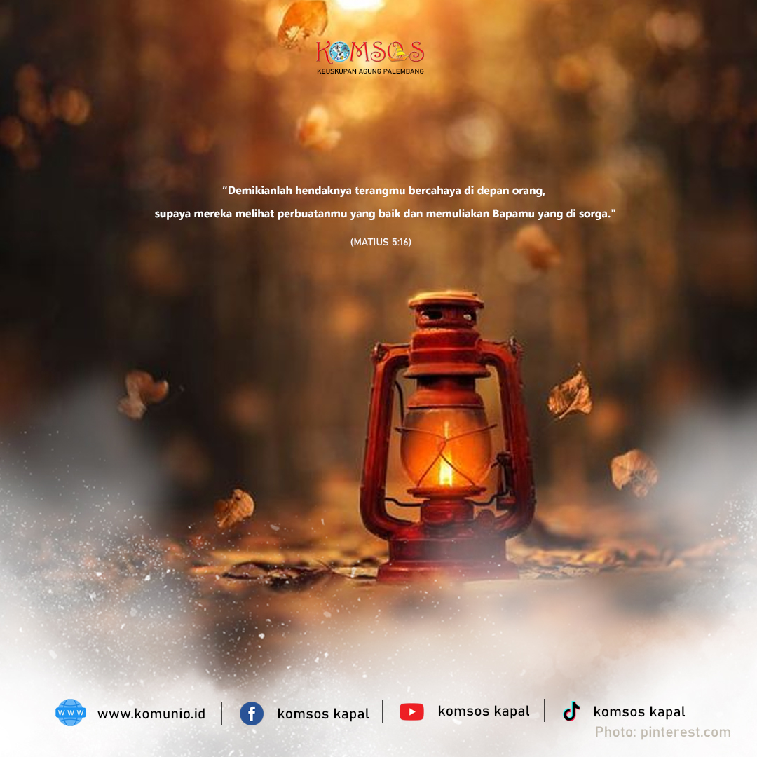 Hendaknya cahayamu bersinar di depan orang, agar mereka melihat perbuatanmu yang baik, dan memuji Bapamu di surga.