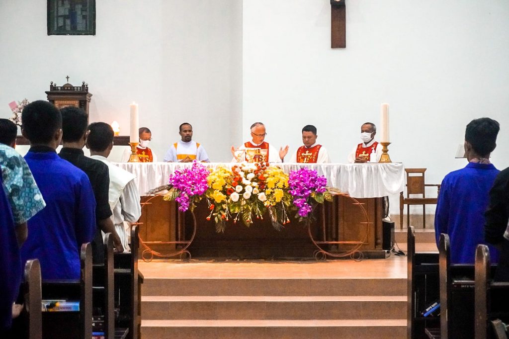 Hal di atas disampaikan oleh Rm Andreas Suparman SCJ, provinsial SCJ, dalam perayaan ekaristi di Seminari Menengah Santo Paulus Kamis (27/7) lalu. Perayaan Ekaristi ini memperingati 40 tahun hidup membiara Rm Teja Antara SCJ dan Rm Agus, serta 25 tahun hidup membiara Rm Anselmus Inharjanto SCJ.