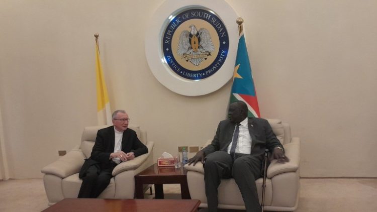 Sore harinya, Kardinal Parolin bertemu secara terpisah dengan Presiden Salva Kiir Mayardit, Wakil Presiden Pertama Riek Machar, dan Uskup Agung Stephen Ameyu.