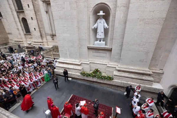 “Ketika saya memikirkan tentang kehidupan yang intens dari orang suci yang agung ini, kata-kata Yesus kembali ke hati saya, ‘Jika sebutir gandum, ketika jatuh ke dalam tanah, tidak mati, maka ia akan tetap tinggal; tetapi jika mati, ia akan menghasilkan banyak buah,’” kata Paus.