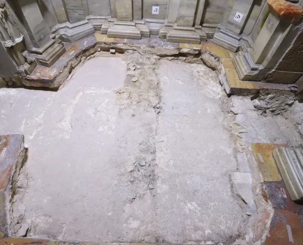 Temuan terbaru – dan salah satu yang paling signifikan – muncul selama penyelidikan yang dilakukan pada paruh kedua bulan Juni di area depan edicule – kuil/kuil kecil yang mengelilingi makam Yesus yang terletak di tengah rotunda, di bawah kubah besar basilika.