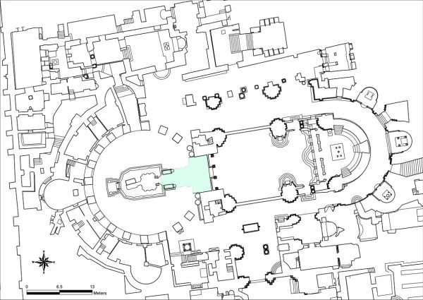 Peta area di depan Edicule di Basilika Makam Suci di Yerusalem. Kredit: Archivio Università La Sapienza, Roma