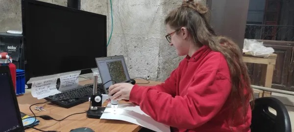 Seorang pekerja di laboratorium di “Galeri Latin” di dalam Basilika Makam Suci. Kredit: Archivio Università La Sapienza