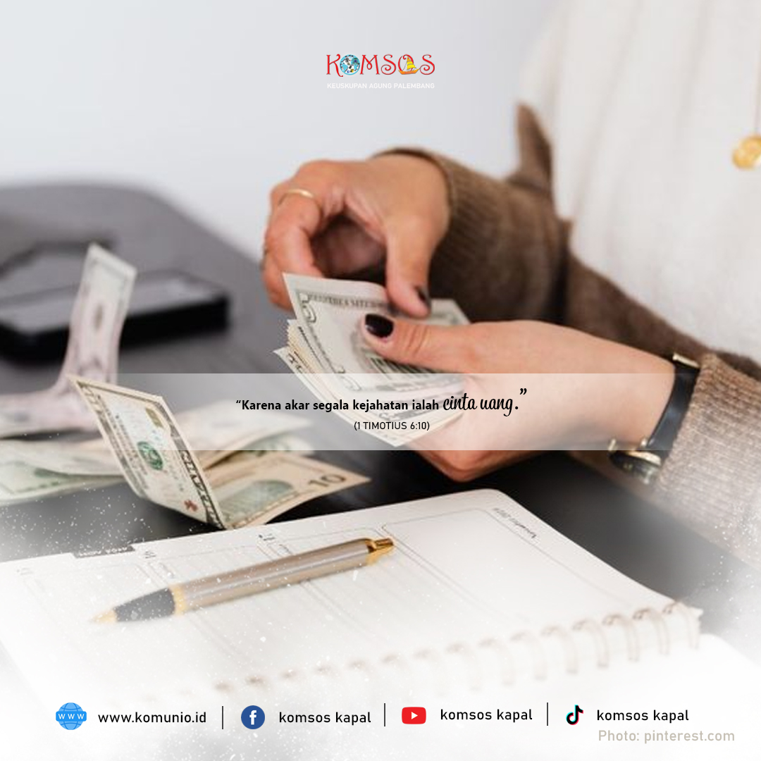 Tetapi mereka yang ingin kaya, terjatuh ke dalam pencobaan, ke dalam jerat dan pelbagai nafsu yang hampa dan yang mencelakakan, yang menenggelamkan manusia ke dalam keruntuhan dan kebinasaan. Karena akar segala kejahatan ialah cinta uang. Karena memburu uanglah, maka beberapa orang telah menyimpang dari iman dan menyiksa diri dengan berbagai-bagai penderitaan.