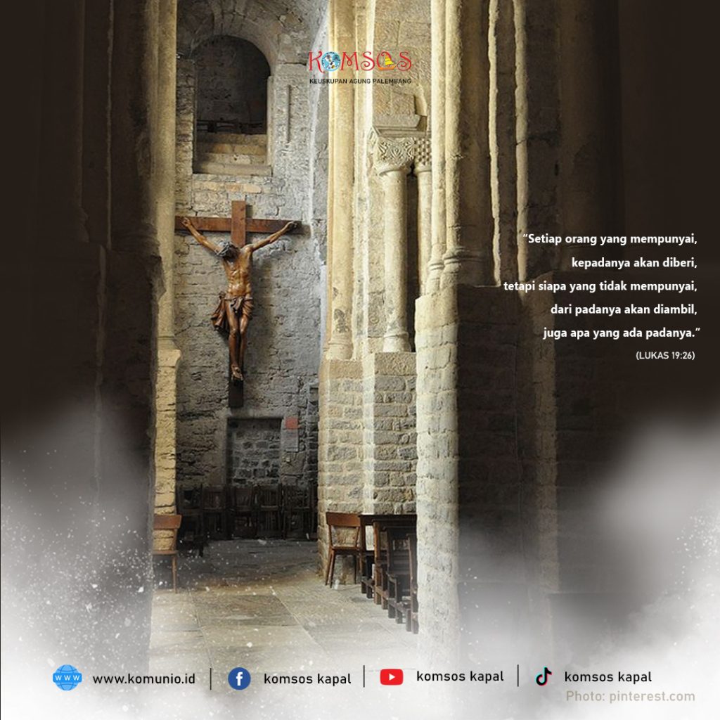Pada waktu Yesus sudah dekat Yerusalem, orang menyangka bahwa Kerajaan Allah akan segera nampak. Maka Yesus berkata, “Ada seorang bangsawan berangkat ke negeri yang jauh untuk dinobatkan menjadi raja. Sesudah itu baru ia akan kembali. Maka ia memanggil sepuluh orang hambanya, dan memberikan mereka sepuluh mina katanya, ‘Pakailah ini untuk berdagang sampai aku kembali.’ Akan tetapi orang-orang sebangsanya membenci dia, lalu mengirimkan utusan menyusul dia untuk mengatakan, ‘Kami tidak mau orang ini menjadi raja atas kami.’ Dan terjadilah, ketika ia kembali, setelah dinobatkan menjadi raja, ia menyuruh memanggil hamba-hambanya, yang telah diberinya uang itu, untuk mengetahui berapa hasil dagang mereka masing-masing. Orang yang pertama datang dan berkata, ‘Tuan, mina Tuan yang satu itu telah menghasilkan sepuluh mina.’ Katanya kepada hamba itu, ‘Baik sekali perbuatanmu itu, hai hamba yang baik. Engkau telah setia dalam perkara kecil, karena itu terimalah kekuasaan atas sepuluh kota.’ Datanglah yang kedua dan berkata, ‘Tuan, mina Tuan telah menghasilkan lima mina.’ Katanya kepada orang kedua itu, ‘Dan engkau, kuasailah lima kota.’ Dan hamba yang ketiga datang dan berkata, ‘Tuan, inilah mina Tuan, aku telah menyimpannya dalam sapu tangan. Sebab aku takut akan Tuan, karena Tuan adalah manusia yang keras. Tuan mengambil apa yang tidak pernah Tuan taruh, dan Tuan menuai apa yang tidak Tuan tabur.’ Kata bangsawan itu, ‘Hai hamba yang jahat! Aku akan menghakimi engkau menurut perkataanmu sendiri. Engkau sudah tahu, aku ini orang yang keras. Aku mengambil apa yang tidak pernah kutaruh dan menuai apa yang tidak kutabur. Jika demikian mengapa uangku tidak kauberikan kepada orang yang menjalankan uang? Maka sekembaliku aku dapat mengambilnya serta dengan bunganya.’ Lalu katanya kepada orang-orang yang berdiri di situ, ‘Ambillah mina yang satu itu dan berikanlah kepada orang yang mempunyai sepuluh mina itu.’ Kata mereka kepadanya, ‘Tuan, ia sudah mempunyai sepuluh mina.’ Ia menjawab, ‘Aku berkata kepadamu, setiap orang yang mempunyai, ia akan diberi; tetapi siapa yang tidak mempunyai, daripadanya akan diambil, juga apa yang ada padanya. Akan tetapi semua seteruku ini, yang tidak suka aku menjadi rajanya, bawalah mereka ke mari dan bunuhlah mereka di depan mataku’.”