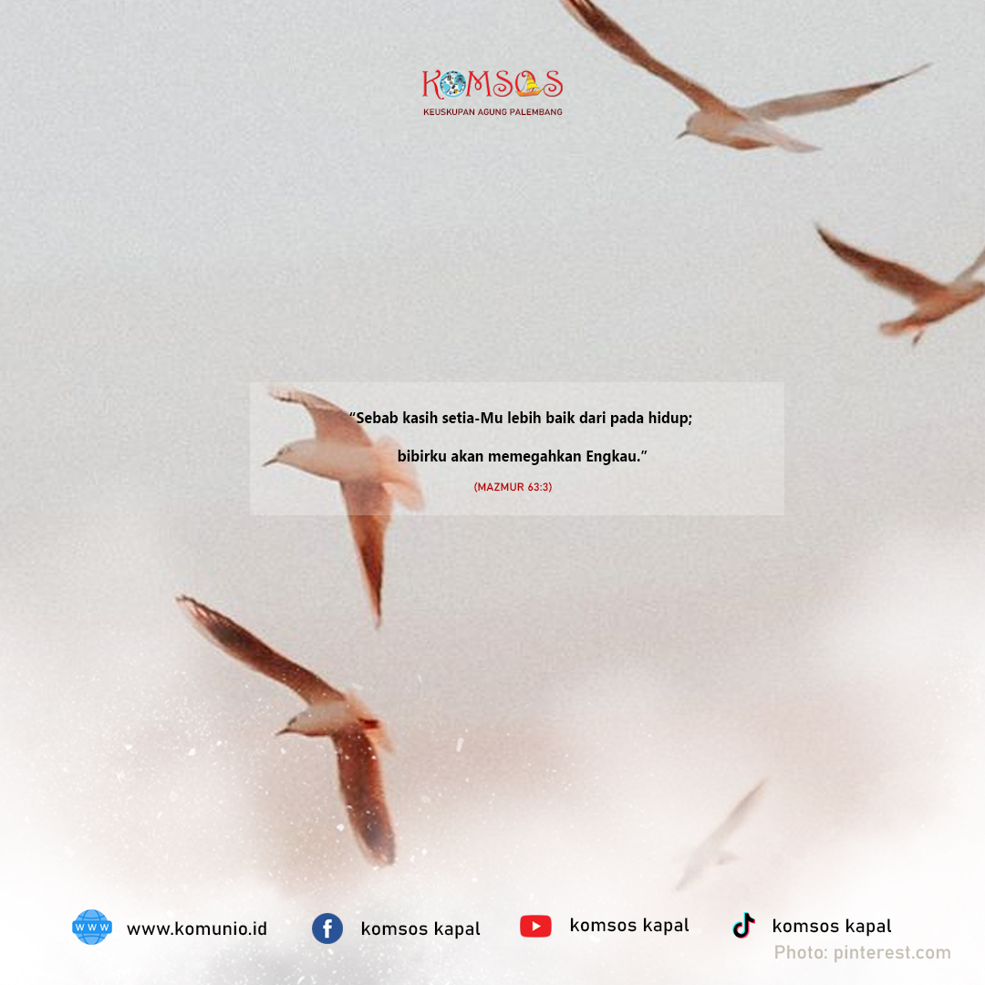 *Demikianlah aku rindu memandang-Mu di tempat kudus, sambil melihat kekuatan dan kemuliaan-Mu. Sebab kasih setia-Mu lebih baik daripada hidup; bibirku akan memegahkan Dikau.