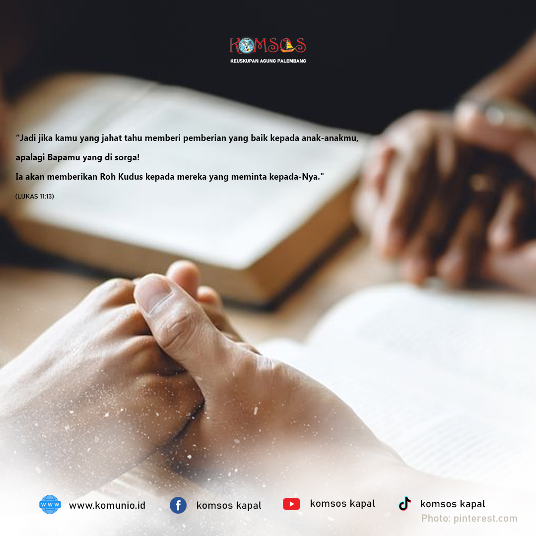 Pada waktu itu, sesudah mengajar para murid berdoa, Yesus bersabda kepada mereka, “Jika di antara kalian ada yang tengah malam pergi ke rumah seorang sahabat dan berkata kepadanya, ‘Saudara, pinjamkanlah aku tiga buah roti, sebab seorang sahabatku dalam perjalanan singgah di rumahku, dan aku tidak mempunyai apa-apa untuk dihidangkan kepadanya; ‘masakan ia yang di dalam rumah itu akan menjawab, ‘Jangan mengganggu aku; pintu sudah tertutup, dan aku serta anak-anakku sudah tidur. Aku tidak dapat bangun dan memberikannya kepadamu.’ Aku berkata kepadamu: Sekalipun dia tidak mau bangun dan tidak mau memberikan sesuatu meskipun ia itu sahabatnya, namun karena sikap sahabatnya yang tidak malu-malu itu, pasti ia akan bangun dan memberikan apa yang dia diperlukan. Oleh karena itu Aku berkata kepadamu, mintalah, maka kamu akan diberi; carilah, maka kamu akan mendapat; ketuklah, maka pintu akan dibukakan bagimu. Karena setiap orang yang meminta, akan menerima; dan setiap orang yang mencari, akan mendapat, dan setiap orang yang mengetuk, akan dibukakan pintu. Bapa manakah di antara kalian, yang memberi anaknya sebuah batu, kalau anak itu minta roti? Atau seekor ular, kalau anaknya minta ikan? Atau kalajengking, kalau yang diminta telur? Jika kalian yang jahat tahu memberikan yang baik kepada anakmu, betapa pula Bapamu yang di surga! Ia akan memberikan Roh Kudus kepada siapa pun yang meminta kepada-Nya.”