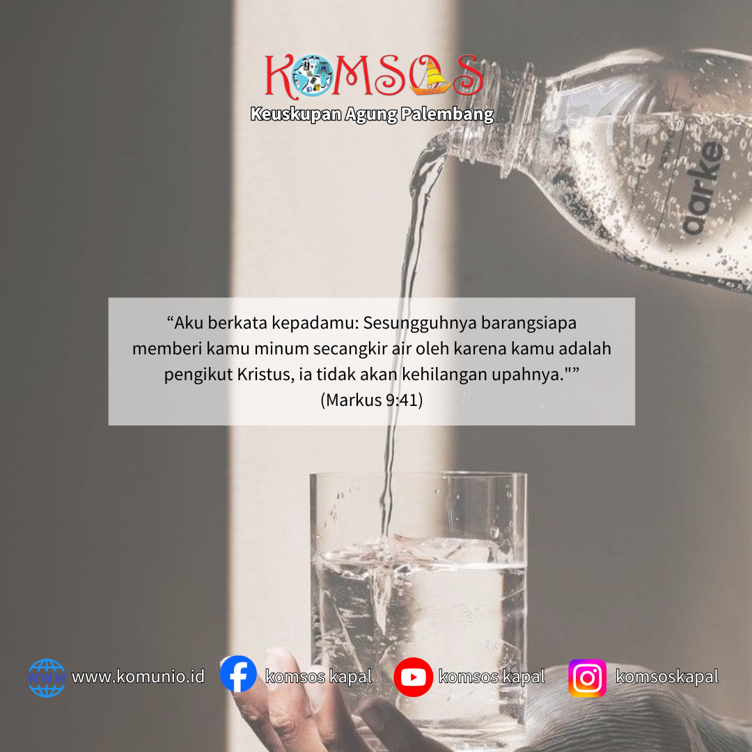 Aku berkata kepadamu: Sesungguhnya barangsiapa memberi kamu minum secangkir air oleh karena kamu adalah pengikut Kristus, ia tidak akan kehilangan upahnya.”