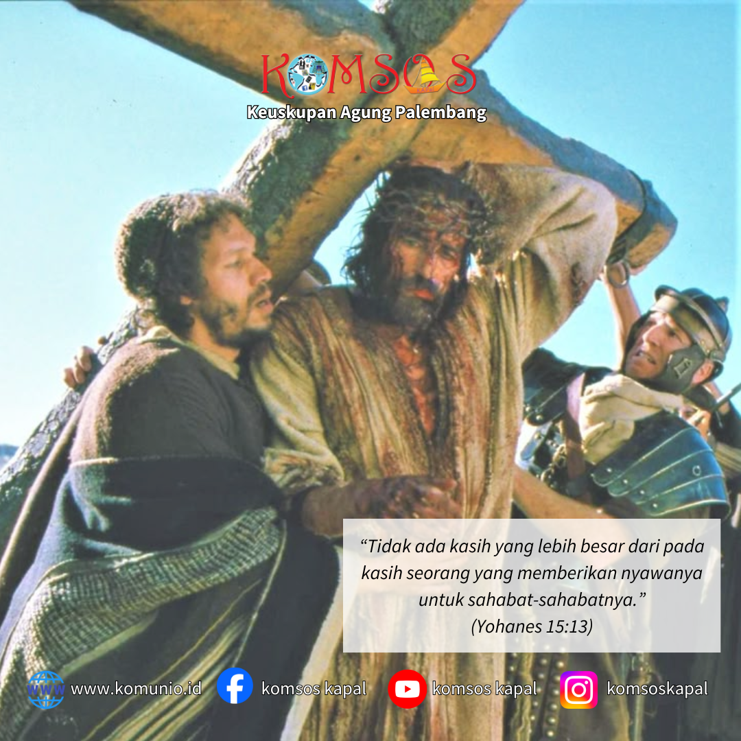 Inilah perintah-Ku, yaitu supaya kamu saling mengasihi, seperti Aku telah mengasihi kamu. Tidak ada kasih yang lebih besar dari pada kasih seorang yang memberikan nyawanya untuk sahabat-sahabatnya.