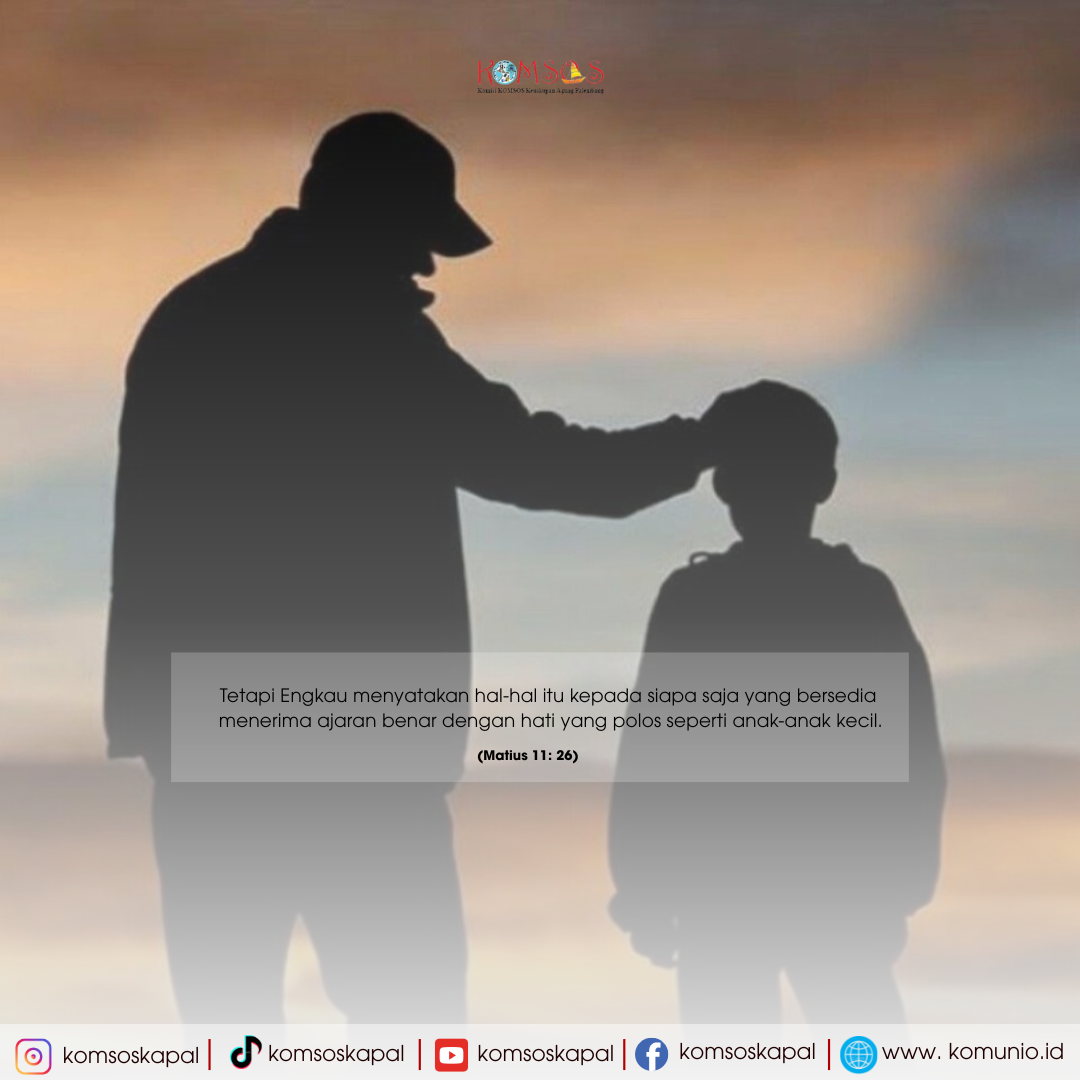 Sekali peristiwa berkatalah Yesus, “Aku memuji Engkau, ya Bapa, TUHAN langit dan bumi, karena Engkau sudah merahasiakan ajaran-ajaran tentang kerajaan-Mu itu dari orang-orang yang bijak dan yang punya banyak pengetahuan, tetapi Engkau menyatakan hal-hal itu kepada siapa saja yang bersedia menerima ajaran benar dengan hati yang polos seperti anak-anak kecil. Karena benar, ya Bapa, itulah yang menyenangkan hati-Mu. “Segala sesuatu sudah diserahkan Bapa kepada-Ku. Tidak seorang pun mengenal Aku – yaitu Anak-Nya, kecuali Bapa. Dan tidak seorang pun mengenal Bapa-Ku kecuali Aku dan orang-orang yang hendak Aku perkenalkan kepada-Nya.