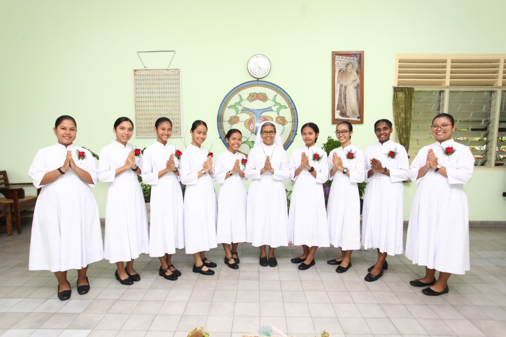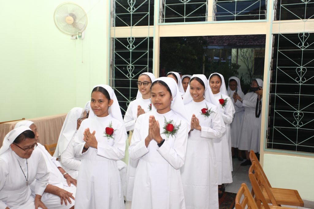 Para suster yang menerima pakaian biara dan memasuki masa novisiat adalah Sr. M. Annaline FCh (Alicia Nulila Oktaviani), Sr. M. Gilberta FCh (Anastasia Ayu Putri Permadani), Sr. M. Germanda FCh (Anastasya Juwita Anggraeni), Sr. M. Rosaline FCh (Desti Eka Putri), Sr. M. Greise FCh (Maria Elisabet Primadani), Sr. M. Teofani FCh (Maria Kerkansia Tukani), Sr. M. Clementia FCh (Regina Dian Rika Situmorang), Sr. M. Chiara FCh (Sara Agustin Sihotang), dan Sr. M. Jequina FCh (Theresia Rismaylani Pratama). Mereka berasal dari beberapa keuskupan di Indonesia, yakni Keuskupan Agung Palembang, Keuskupan Agung Jakarta, Keuskupan Agung Semarang, Keuskupan Labuhan Bajo, Keuskupan Timika, dan Keuskupan Pangkal Pinang.