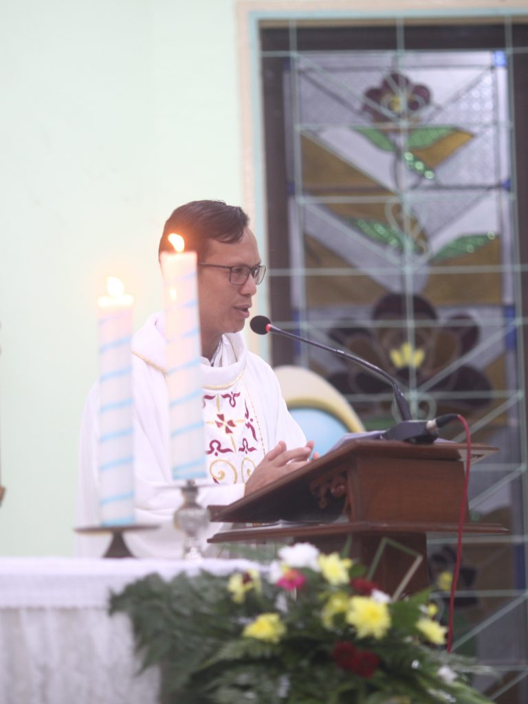 Tampak hadir mendampingi sebagai konselebran adalah Pastor Donatus Kusmartono SCJ dan Pastor Paroki St. Yoseph sekaligus Dekan Dekanat Palembang, Pastor Hyginus Gono Pratowo.