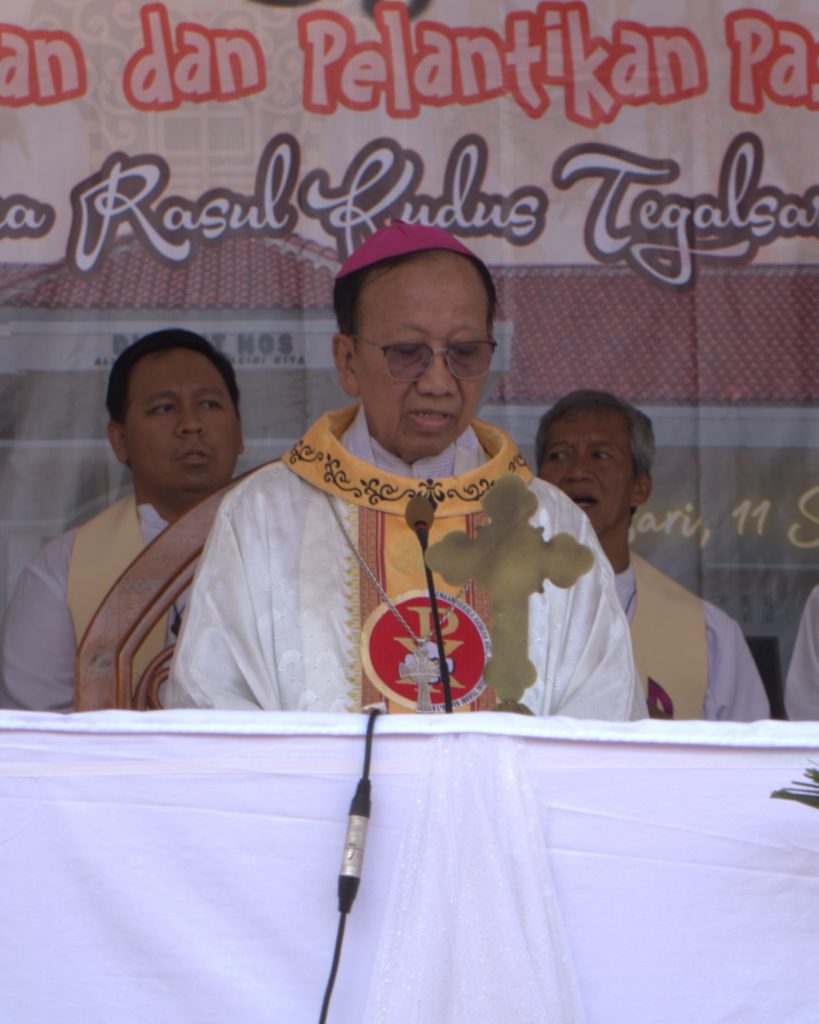 Demikian disampaikan oleh Uskup Emeritus Keuskupan Agung Palembang, Mgr. Aloysius Sudarso SCJ, dalam sambutannya pada Pemberkatan Pastoran Baru Paroki Para Rasul Kudus Tegalsari, Kamis (11/9/2025) kemarin. Bapa Uskup juga menegaskan bahwa gedung ini bukan sekadar bangunan, tetapi lambang persatuan dan tanda kasih Allah yang hidup.