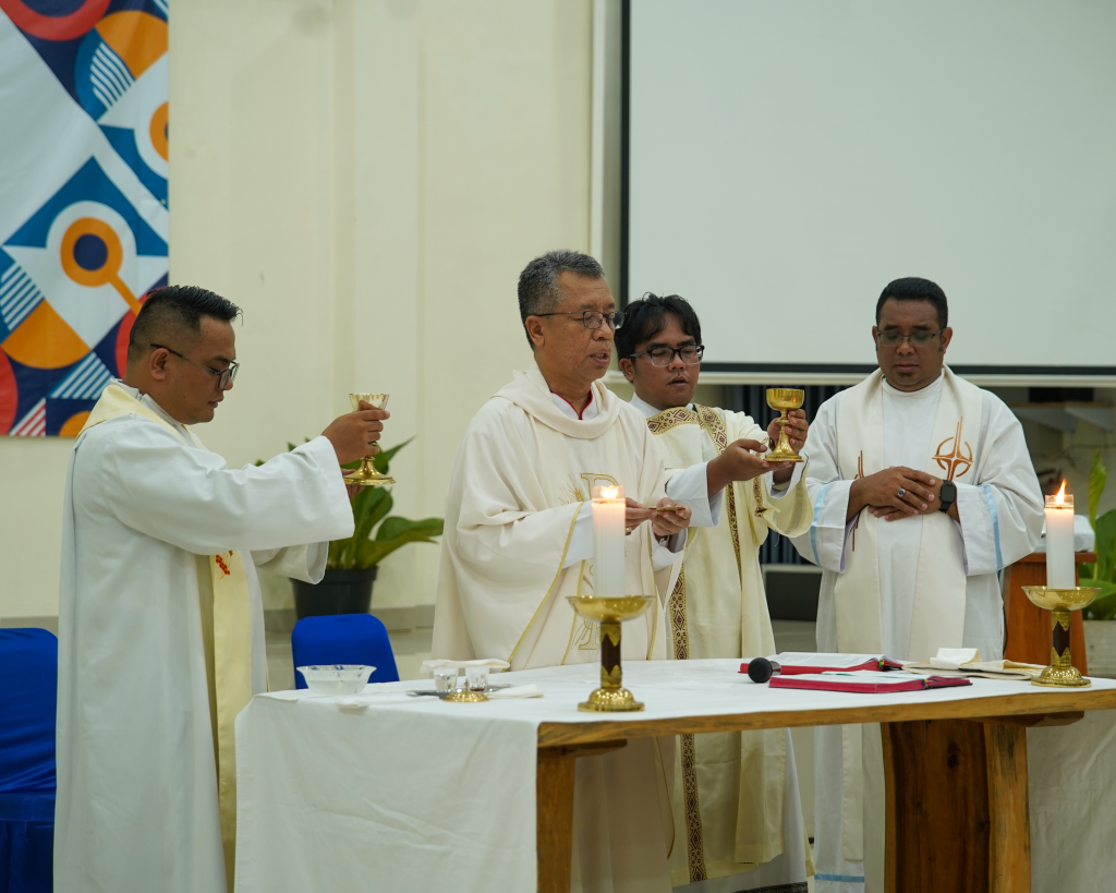 Rangkaian kegiatan yang dilaksanakan di Rumah Retret Puri Sadhana Pangkalpinang ini diawali dengan Perayaan Ekaristi yang dipimpin oleh Uskup Keuskupan Pangkalpinang, Mgr. Adrianus Sunarko OFM pada Senin (15/9/2025) sore. Hadir mendampingi Bapa Uskup adalah Ketua Komisi Komsos Keuskupan Agung Palembang, Pastor Titus Jatra Kelana; Ketua Komisi Komsos Keuskupan Sibolga, Pastor Adrian Tobing; dan Diakon Perado Persada Vinantius Tarigan.