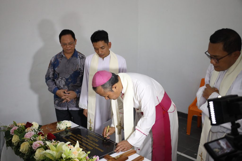 Rangkaian Upacara Pemberkatan ditutup dengan penandatanganan prasasti oleh Mgr. Yohanes Harun Yuwono dan dilanjutkan dengan ramah-tamah bersama di aula pastoran.