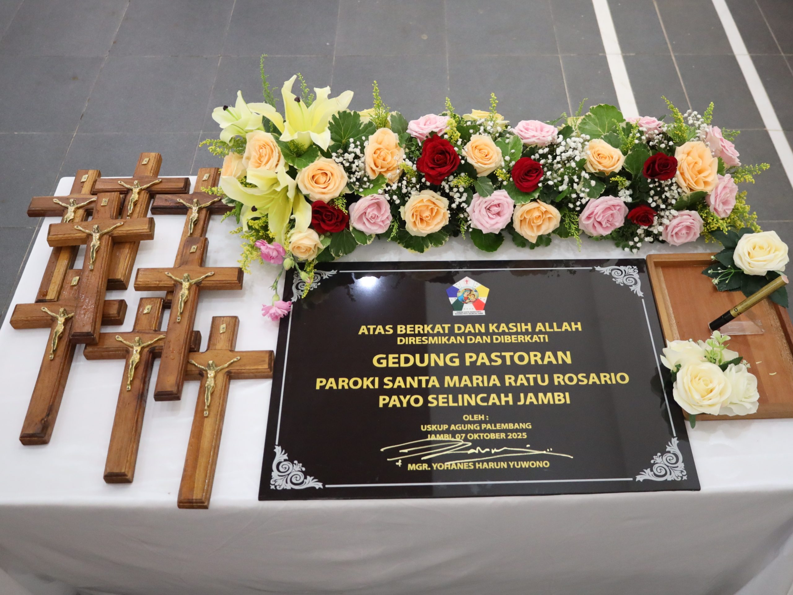 Suasana penuh sukacita dan syukur menyelimuti kompleks Pos Pelayanan Santa Maria Ratu Rosario Payo Selincah Jambi, pada Selasa (7/10/2025) pagi. Mengawali rangkaian kunjungannya dalam rangka penetapan Pos Pelayanan Payo Selincah menjadi Paroki, Uskup Agung Palembang, Mgr. Yohanes Harun Yuwono berkenan memberkati gedung pastoran Payo Selincah.
