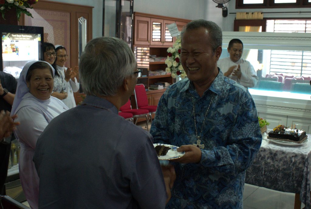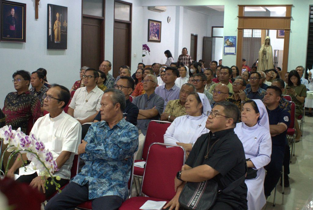 Suasana syukur penuh kegembiraan dan persaudaraan mengemuka di antara tetamu yang hadir di Wisma Pastor Bonus Keuskupan Agung Palembang pada Jumat (10/10/2025) siang. Hari itu para imam, biarawan, biarawati, dan perwakilan umat Dekanat Palembang hadir menyatukan hati untuk bersukacita bersama Uskup Agung Palembang, Mgr. Yohanes Harun Yuwono yang merayakan syukur atas 12 tahun Episkopal dan 4 tahun pelayanannya sebagai Uskup Agung Palembang.