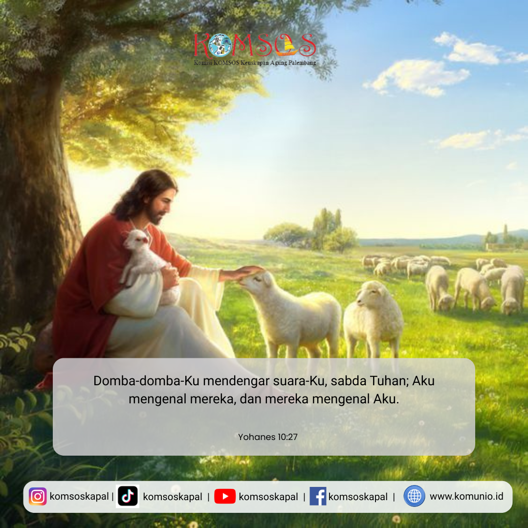 Domba-domba-Ku mendengar suara-Ku, sabda Tuhan;Aku mengenal mereka, dan mereka mengenal Aku.