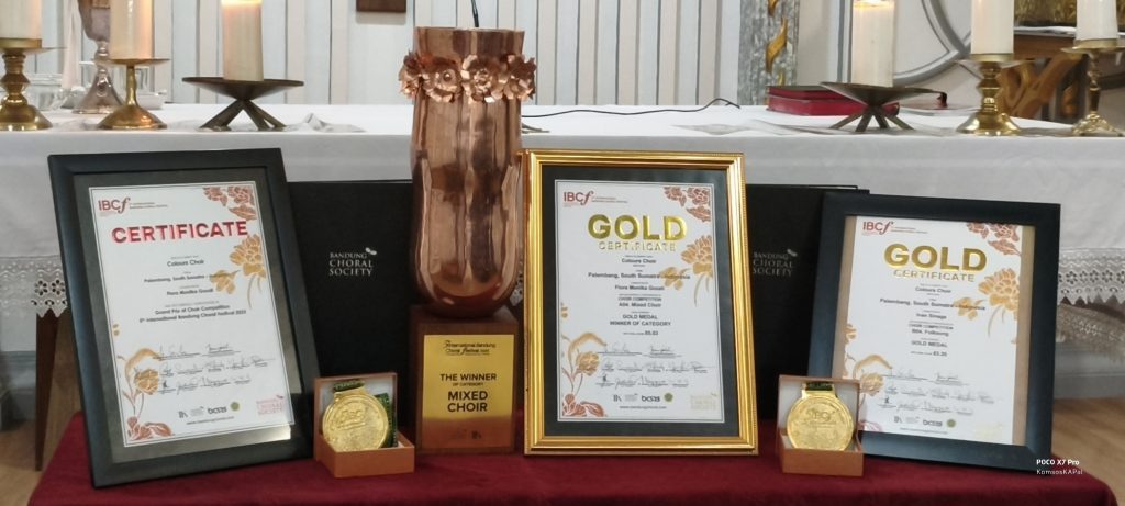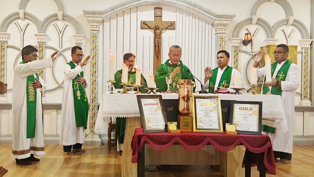 Janji itu dipenuhi. Prestasi yang membanggakan bagi keluarga besar Colours Choir dan umat Katolik Keuskupan Agung Palembang ini dibingkai dengan Perayaan Ekaristi Syukur di Kapel Katedral St. Maria Palembang yang dipimpin oleh Uskup Agung Palembang, Mgr. Yohanes Harun Yuwono pada Selasa (21/10/2025) petang. Hadir sebagai konselebran adalah Pastor Paroki Katedral St. Maria, Pastor Markus Edi Sucipto, Pastor Stepanus Supardi, Pastor Petrus Sukino, Pastor Paskalis Aditya Wardana SCJ, dan Pastor Titus Jatra Kelana.