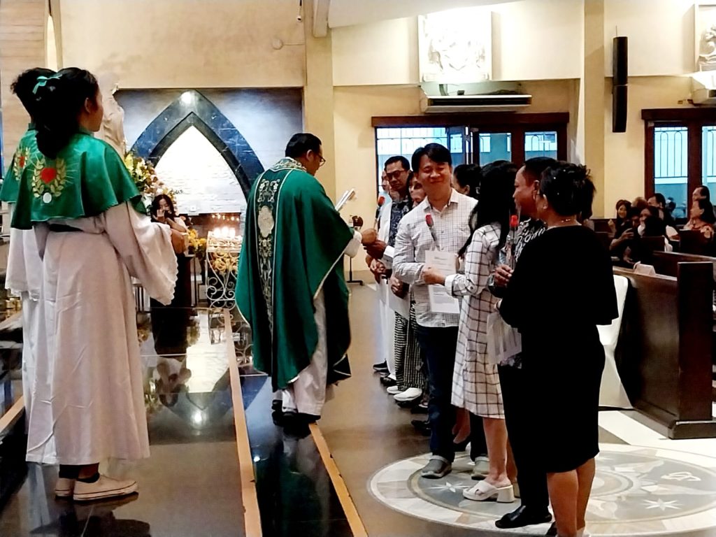 Pasutri yang menyegarkan janji perkawinan adalah Gerardus Derwin Chandra-Laurensia Vinna Hartono (Lingkungan St. Stefanus), Gabriel Suhandi-Maria Elva Margareta Gunadi (Lingkungan Fransiskus Xaverius), Tonius Manalu-Faustina Mei Samosir (Lingkungan Christoforus Martir), Pankratius Sukarnoto-Santa Maria Suharti (Lingkungan Emmanuel 3), dan Bus Tony-Maria Fransiska Yemmy Norwati Kurniawan (Lingkungan St. Agatha).