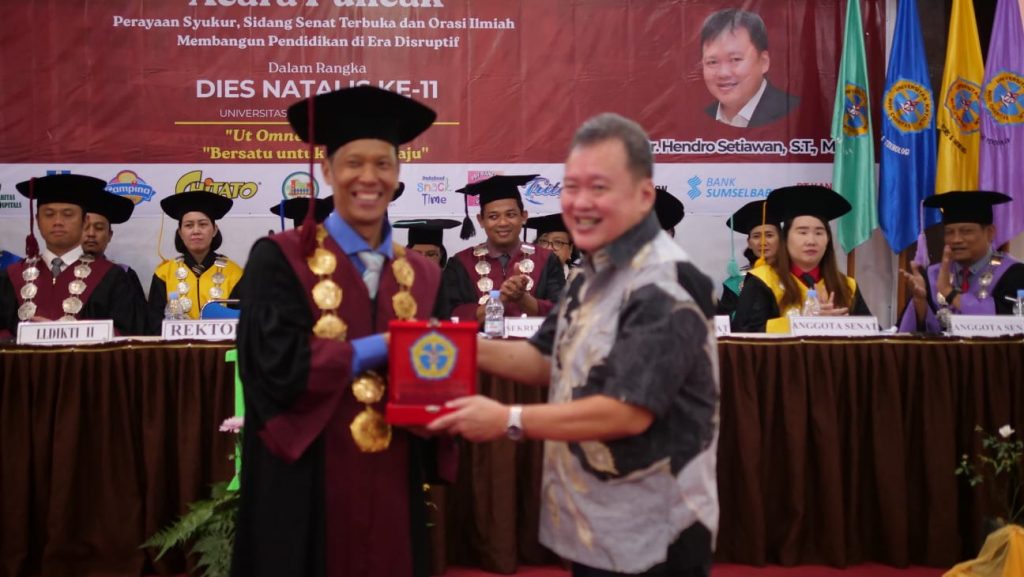 Demikian diungkapkan oleh Hendro Setiawan saat mengawali materi Orasi Ilmiahnya bertajuk Inovasi Perguruan Tinggi Di Era Disruptif yang disampaikan dalam Sidang Senat Terbuka Universitas Katolik Musi Charitas (UKMC) Palembang, Jumat (24/10/2025) pagi. Kegiatan ini diselenggarakan dalam rangkaian perayaan puncak Dies Natalis Ke- 11 UKMC yang mengusung tema Ut Omnes Unum Sint: Bersatu untuk UKMC Maju.