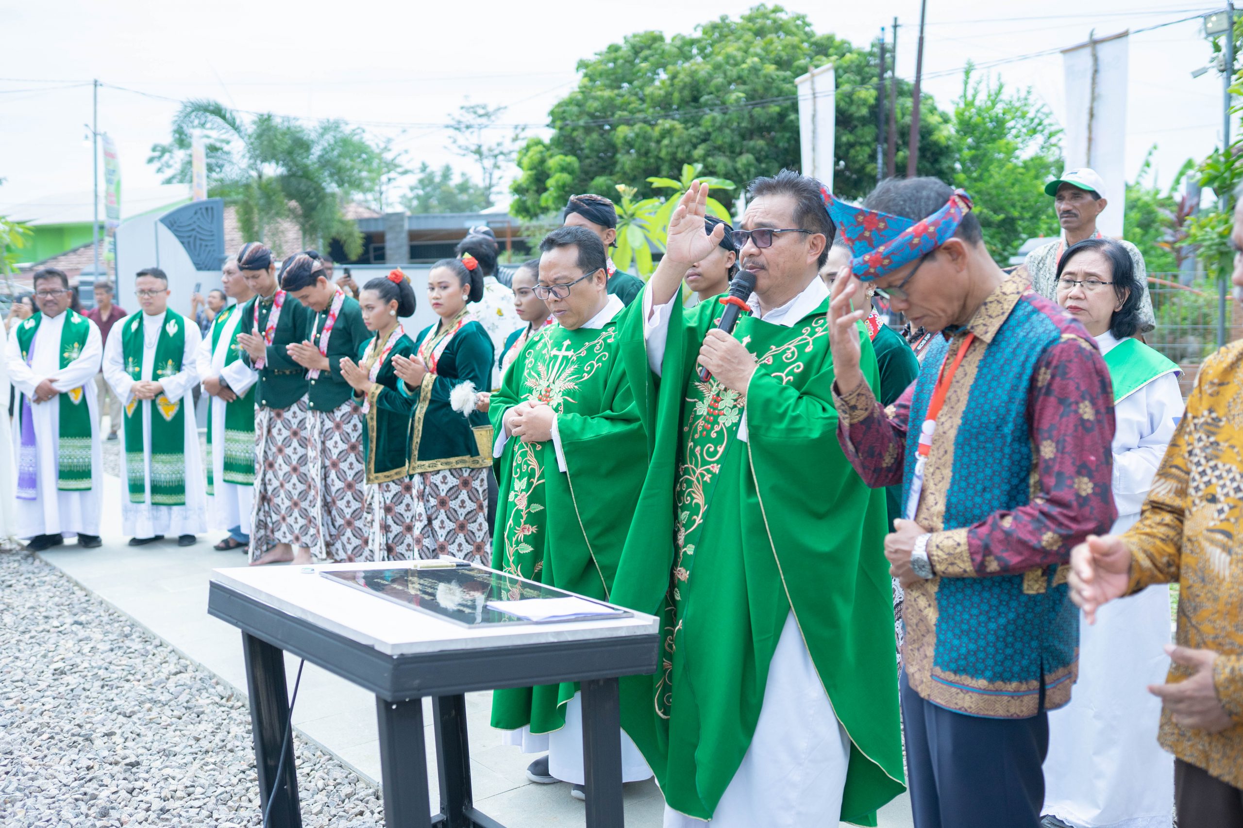 Penandatanganan prasasti dan dentang lonceng menjadi penanda diresmikannya menara yang mulai dibangun pada 2 Agustus 2025. Pembangunan ini ditandai dengan peletakan batu pertama oleh Uskup Agung Palembang, Mgr. Yohanes Harun Yuwono.