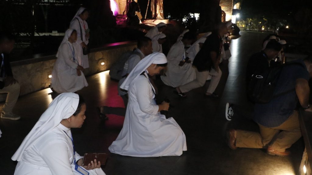 Suasana hening dan khusyuk menyelimuti Kawasan Taman Doa Via Crucis Sukamoro, Banyuasin ketika pembimbing dan para…