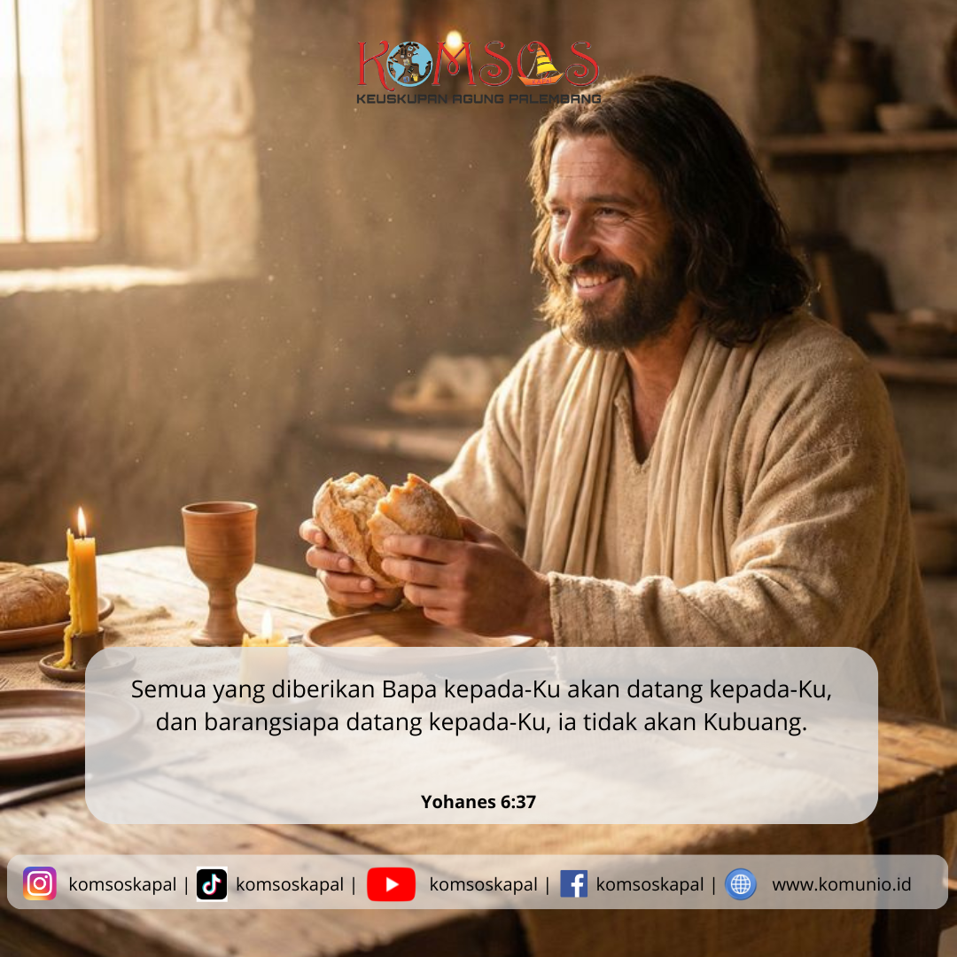 Di rumah ibadat di Kapernaum Yesus berkata kepada orang banyak, “Akulah roti hidup! Barangsiapa datang kepada-Ku, ia tidak akan lapar lagi, dan barangsiapa percaya kepada-Ku, ia tidak akan haus lagi. Tetapi Aku telah berkata kepadamu: Sungguh pun kamu telah melihat Aku, kamu tidak percaya. Semua yang diberikan Bapa kepada-Ku akan datang kepada-Ku, dan barangsiapa datang kepada-Ku, ia tidak akan Kubuang. Sebab Aku telah turun dari surga bukan untuk melakukan kehendak-Ku, tetapi untuk melakukan kehendak Dia yang telah mengutus Aku. Dan inilah kehendak Dia yang telah mengutus Aku, yaitu supaya dari semua yang telah diberikan-Nya kepada-Ku jangan ada yang hilang, tetapi supaya Kubangkitkan pada akhir zaman. Sebab inilah kehendak Bapa-Ku, yaitu supaya setiap orang, yang melihat Anak dan percaya kepada-Nya beroleh hidup yang kekal, dan supaya Aku membangkitkannya pada akhir zaman.”